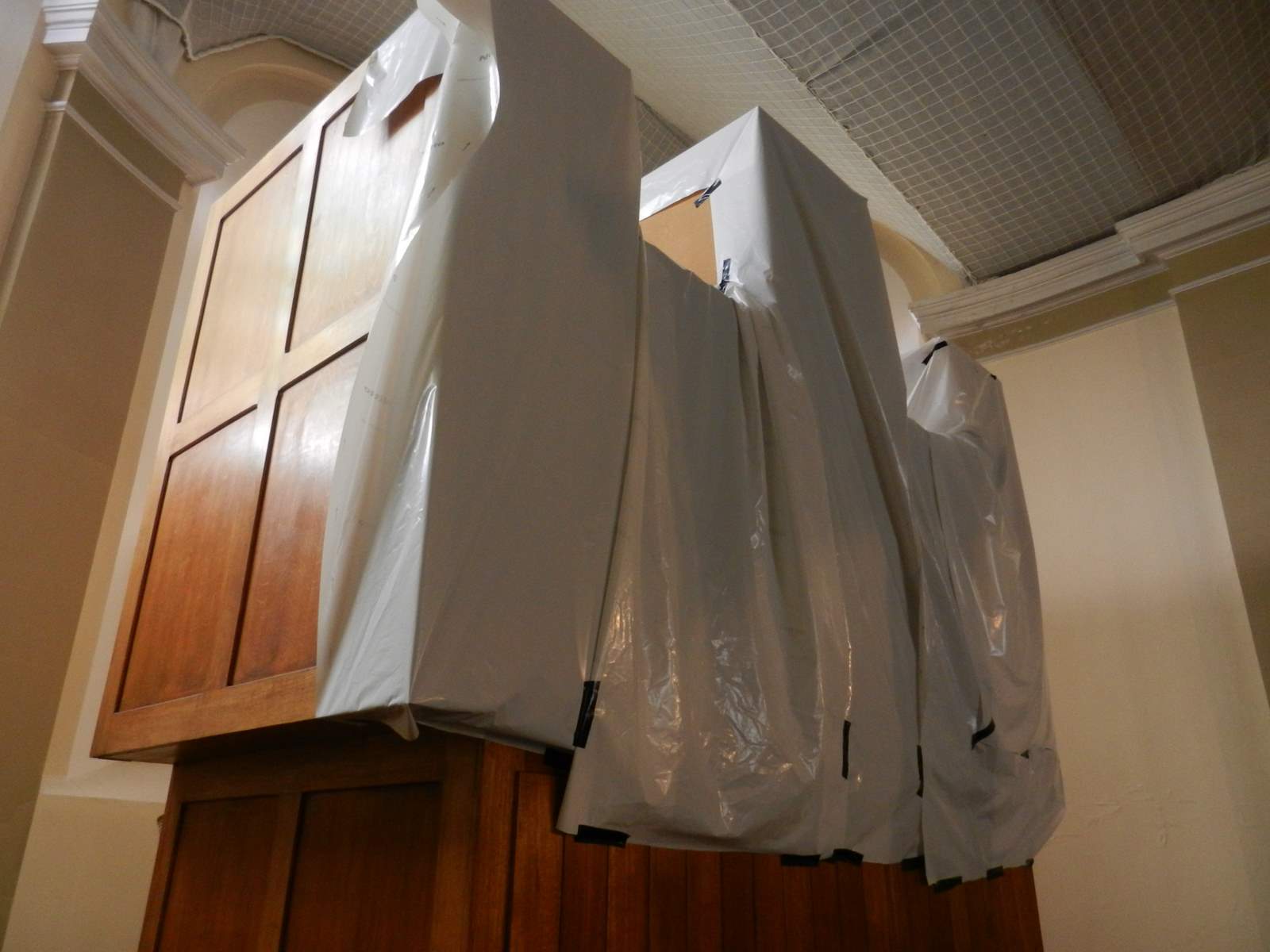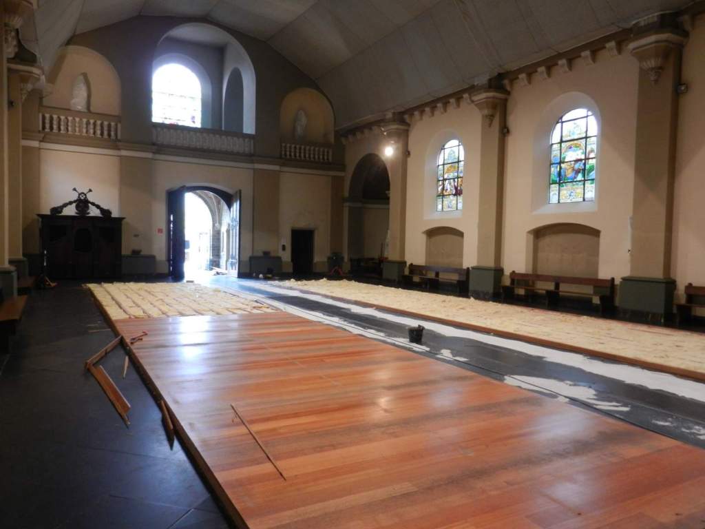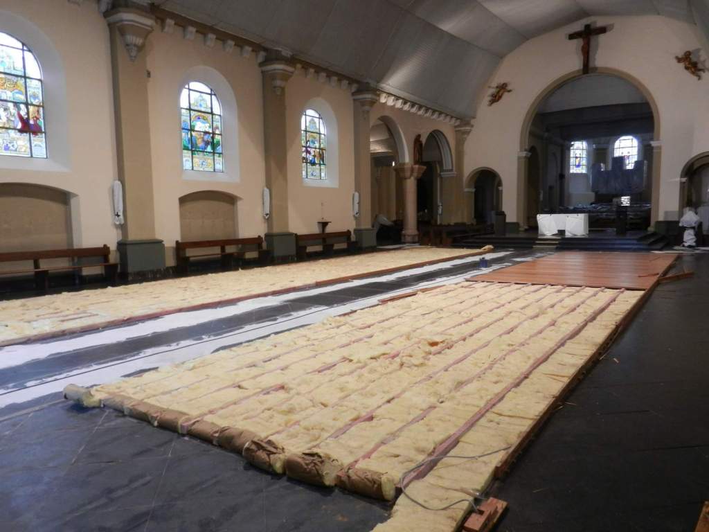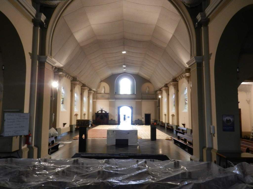 ’t Leek wel een eindeloze weg, maar eindelijk is de restauratie van het gewelf in onze kerk gestart. Tijdens de eerste helft van de voorziene werkdagen is het schip van de kerk afgesloten voor de kerkgangers. Noeste werkers zullen in afwachting van de voltooiing van de werken een voorlopige ruimte creëren rond het altaar om daar de eucharistievieringen te laten doorgaan.Dat zo’n restauratie enige hinder met zich meebrengt is duidelijk.