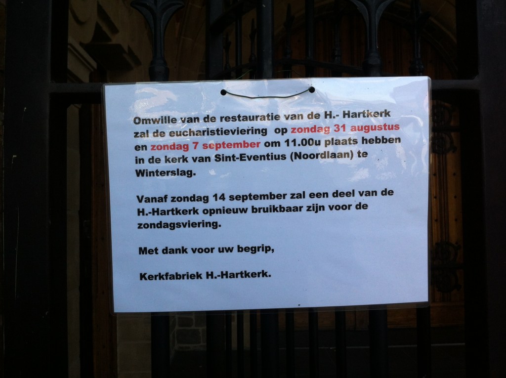 Om de mogelijkheid te hebben een mooi alternatief op te bouwen en de kerk bouwklaar te maken, zal de Heilig Hartkerk gesloten zijn op zo 31 augustus en zo 7 september.