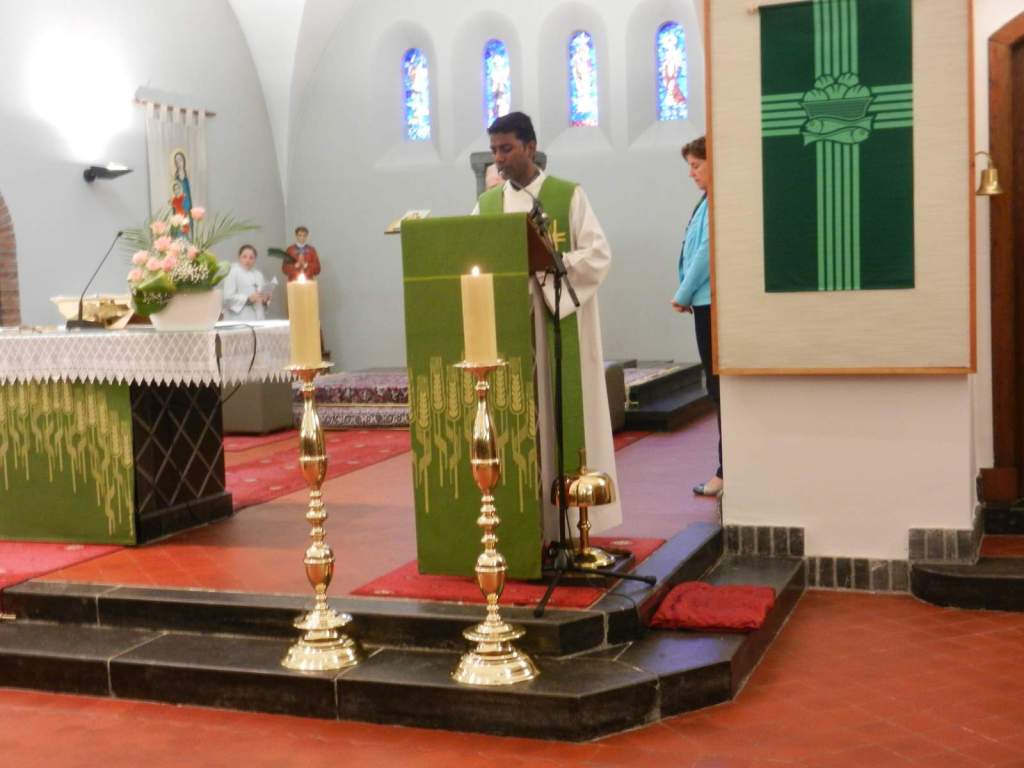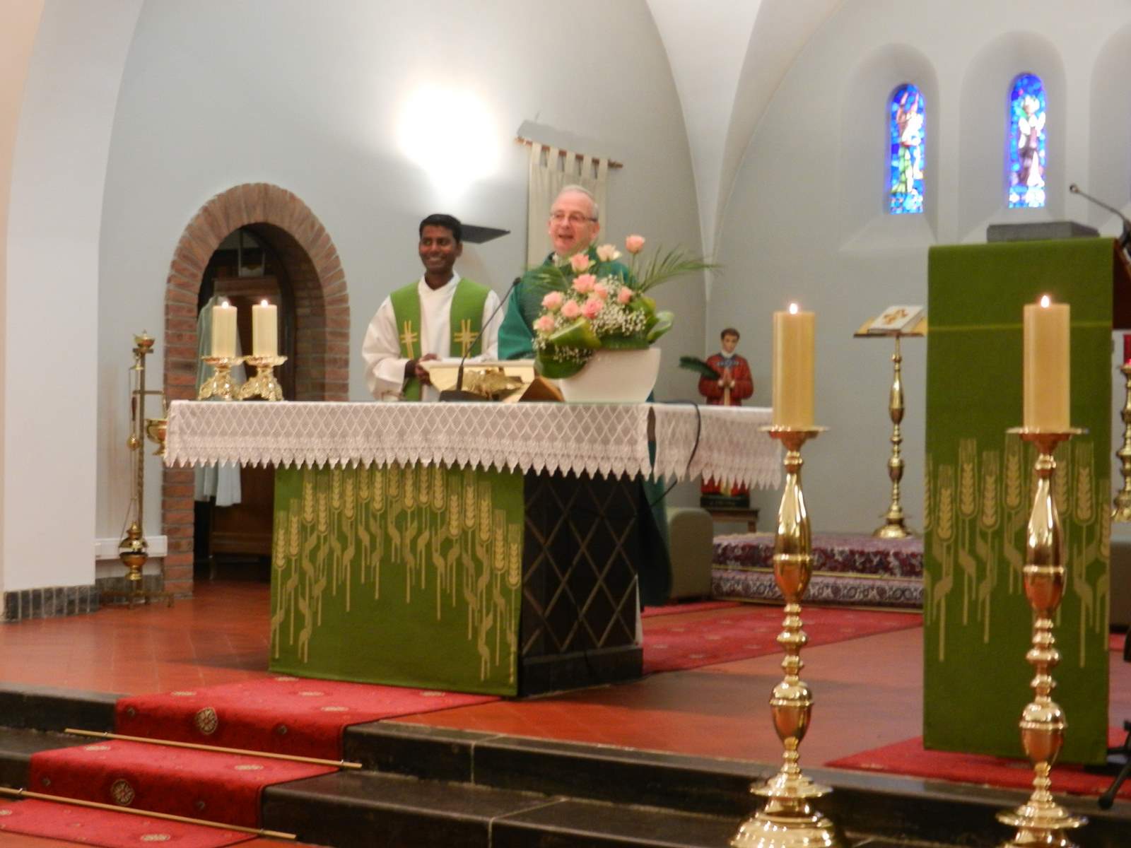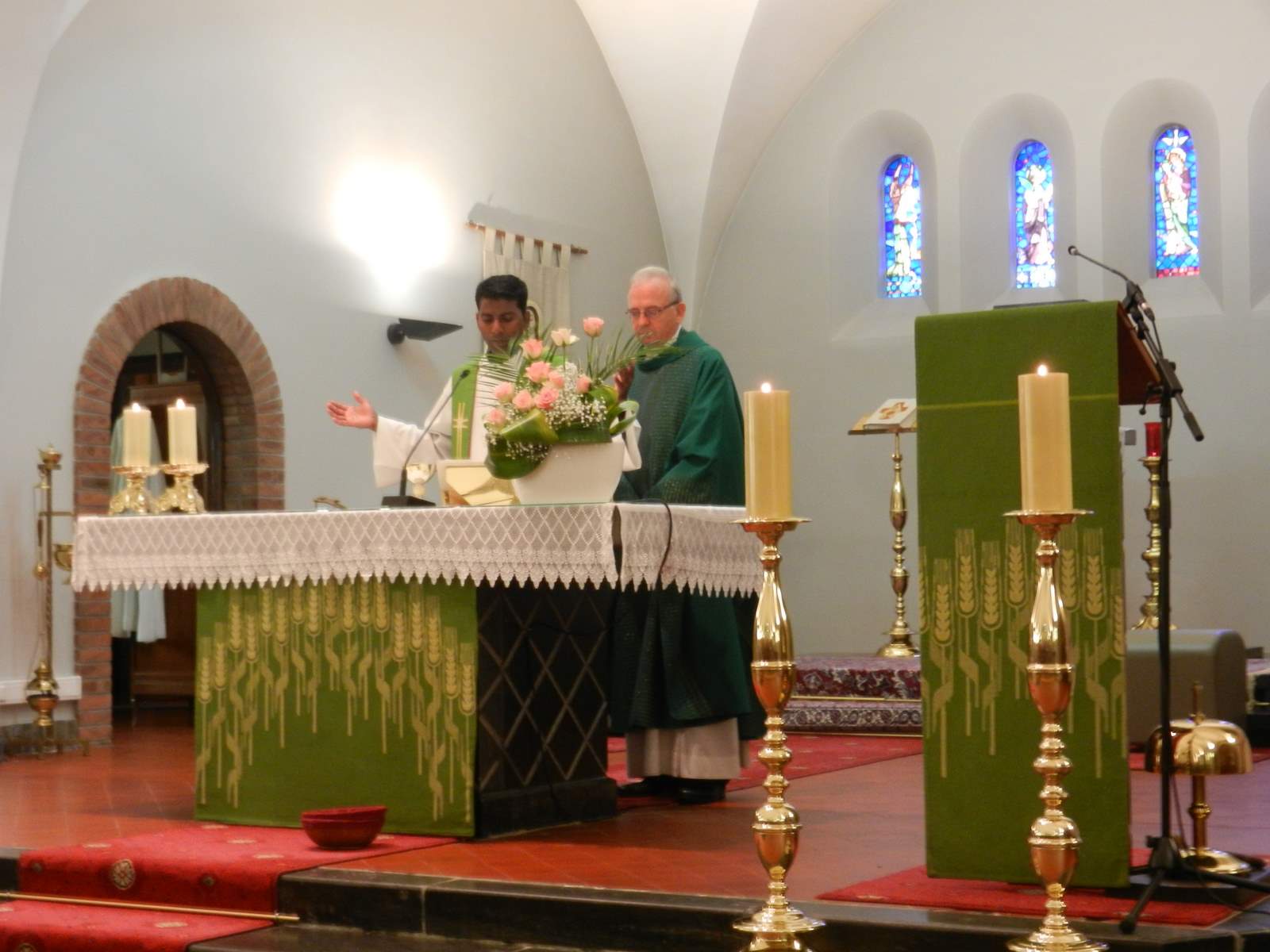 Fr. Thomas, sinds november vorig jaar uitgezonden als missionaris van de orde Heralds of Goods News (zie vorig artikel hier), is op zondag 7 sept in de St.-Eventiusparochie de eucharistieviering samen met pastoor-deken Jaak Hermans voorgegaan. Na een intensieve cursus Nederlands, die overigens nog steeds doorgaat, kwestie van zich in een voor hem totaal nieuwe en vreemde taal verstaanbaar te kunnen maken, zal hij stap voor stap ingezet worden in onze federatie.