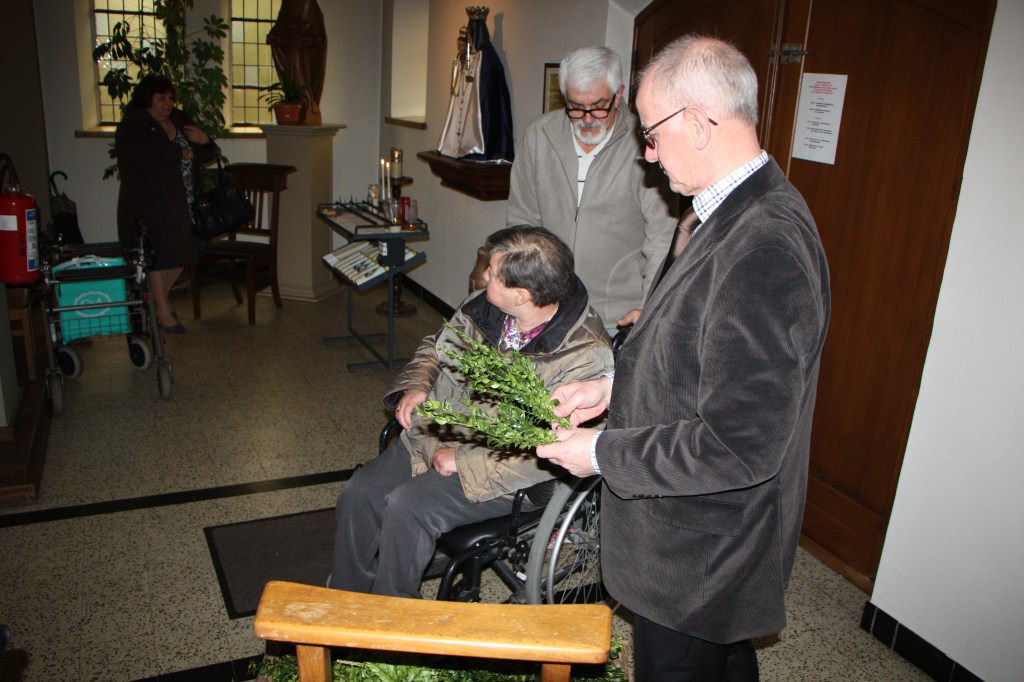 We zijn zaterdag 28 maart 2015. Bijna zeventig zieken, hoog bejaarden en sympathisanten verzamelden in de wijkkerk van Oud-Winterslag. Pastoor Jaak Hermans ging voor in een eucharistieviering die in het teken van Palmzondag stond. Alle genodigden ontvingen er een palmtakje.
