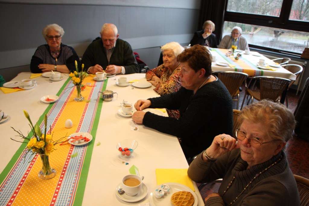Deze paasontmoeting werd afgesloten met een smakelijke broodmaaltijd. Krentenbrood, croissants, paaseieren … ’t stond allemaal op het menu. Meer dan tevreden gingen onze gasten omstreeks 18.00 u naar huis. Eens te meer een geslaagde ziekenontmoeting. We zien elkaar terug op onze uitstap in mei.