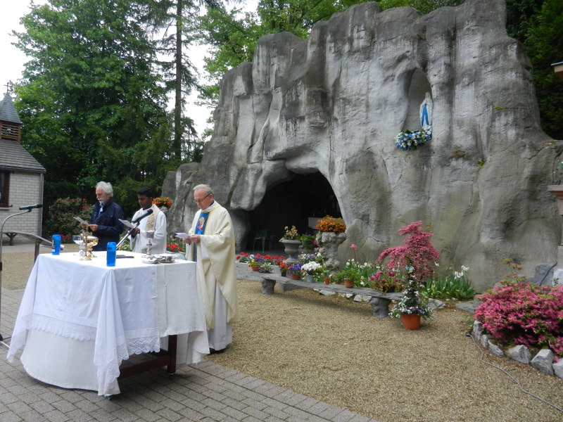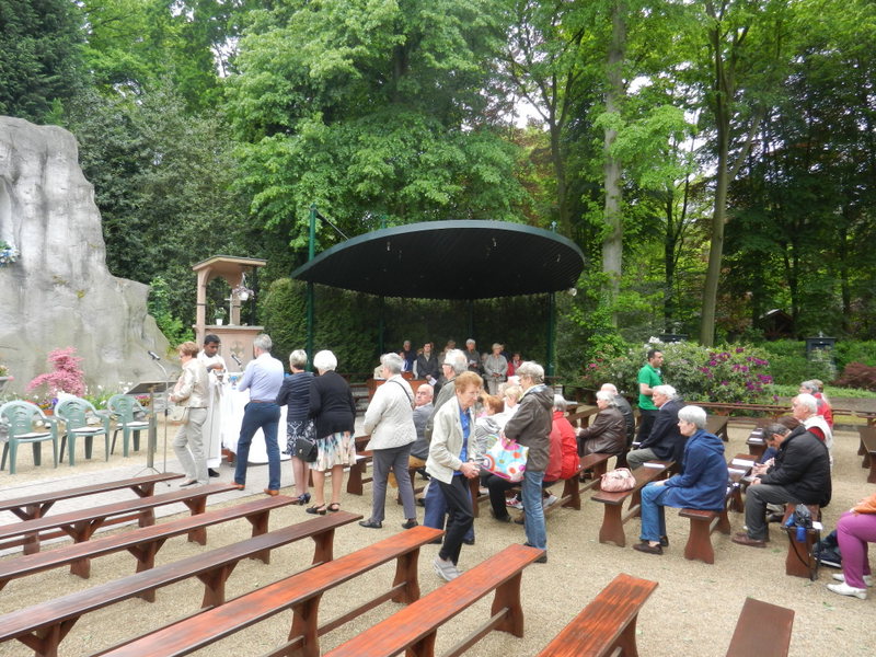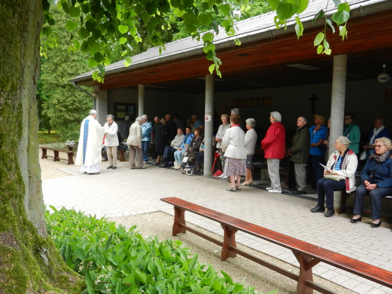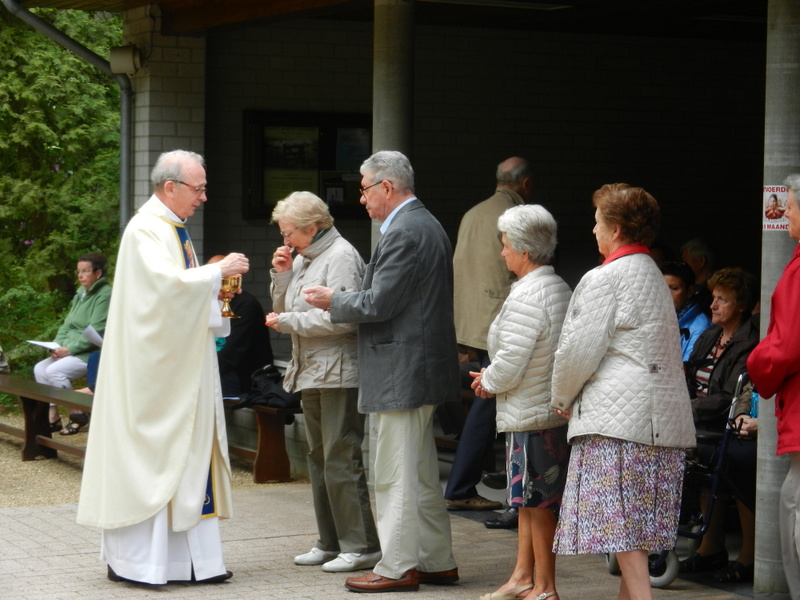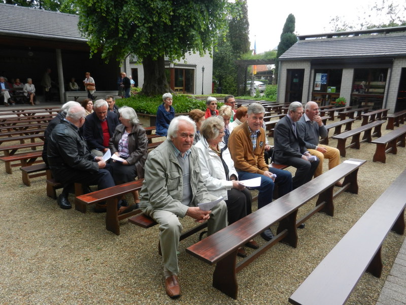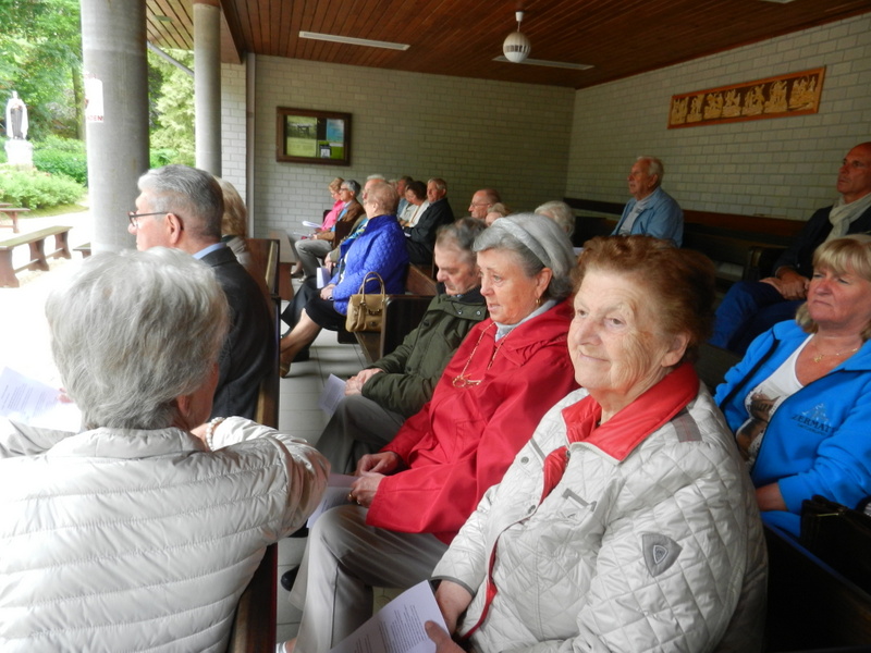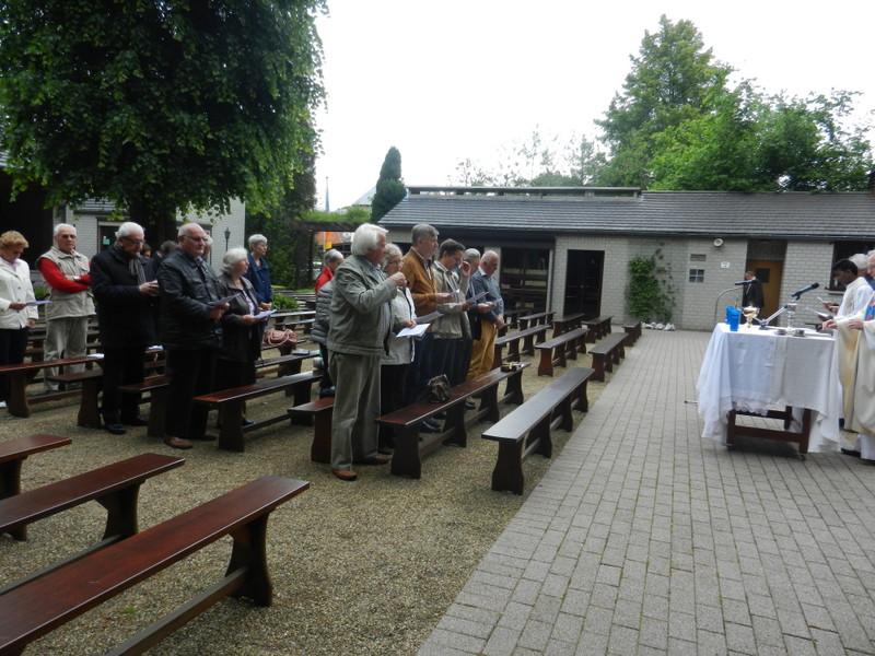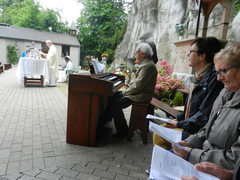 ‘Moeder van Jezus en moeder van elk van ons,’ baden we samen in het litaniegebed van de hand van Inny Driessen. En geef toe, het heeft wat om samen eucharistie te vieren terwijl merels, meesjes en andere prachtvogels hun mooiste lied presenteren tussen het vele groen dat Zutendaal rijk is.