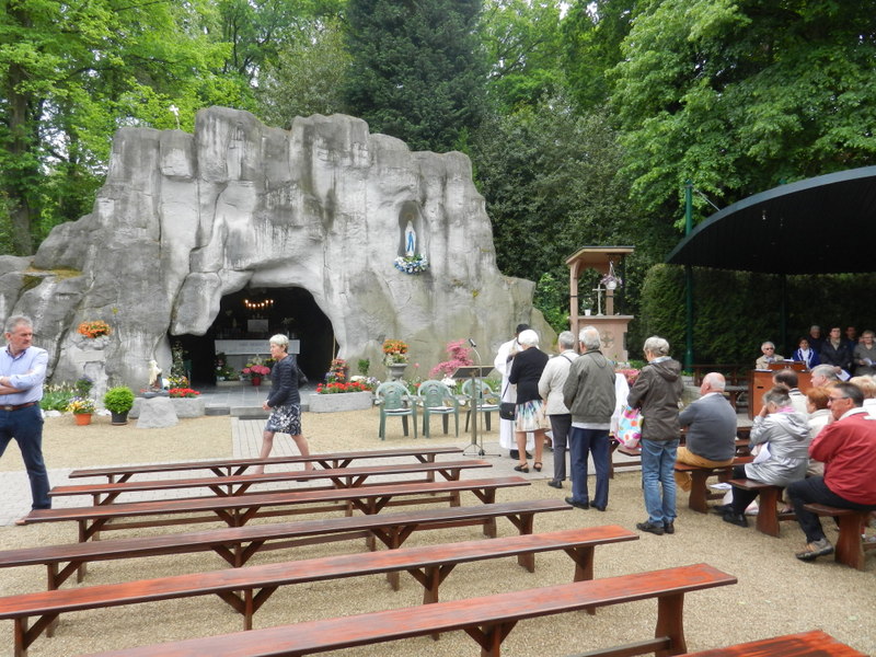 Met z’n twaalf op de fiets, het merendeel per auto … maar allen met dezelfde bestemming: de Lourdesgrot in Wiemesmeer. Een traditie in de meimaand die ook wij in Winterslag koesteren.