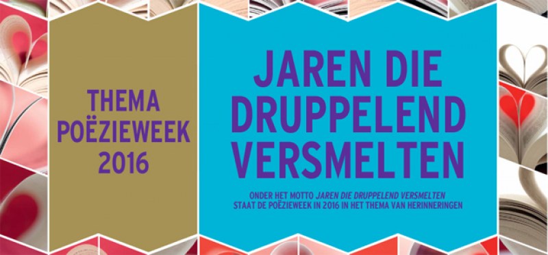 Onder het motto ‘Jaren die druppelend versmelten’ staat de Poëzieweek van 28 januari tot 3 februari 2016 in het teken van herinneringen. Donderdag 28 januari was het naar goede jaarlijkse gewoonte Gedichtendag in Vlaanderen en Nederland.