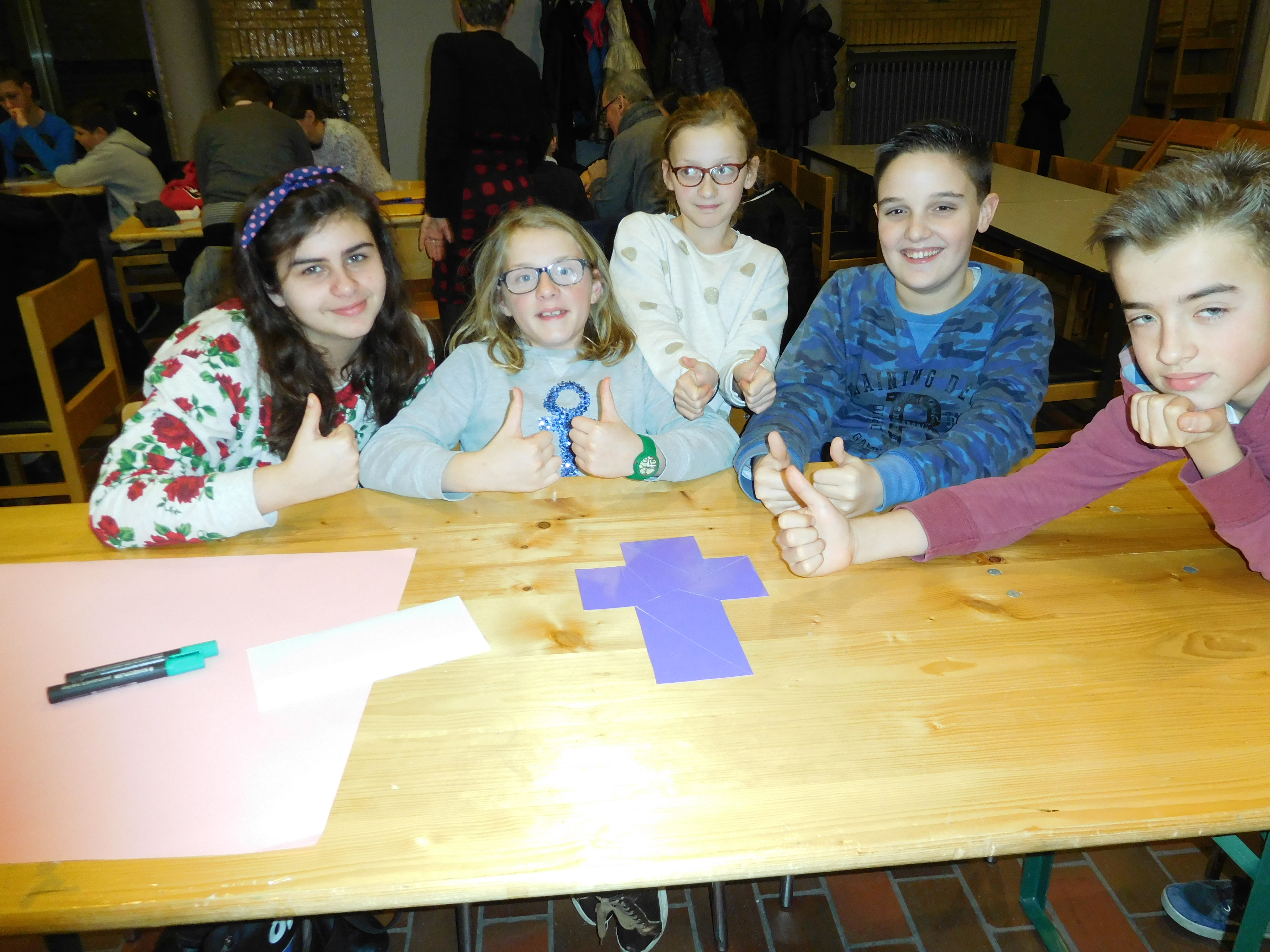 - We startten met een korte duiding door Marie Jeanne.De vormelingen puzzelden dan een kruis in elkaar, de ene zijde paars (wat ons doet denken aan de vasten, aan boetetijd) en de andere zijde wit. (Wit is de kleur van belangrijke kerkelijke feesten, zoals Pasen).