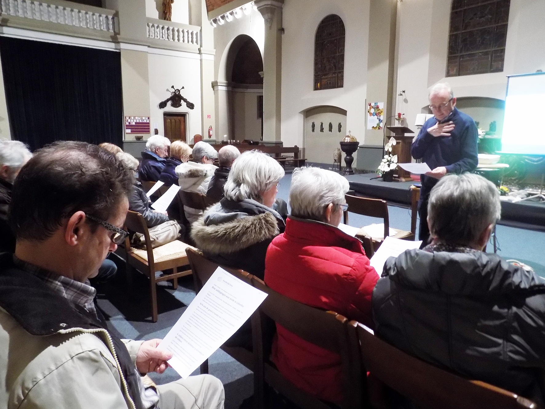 Een groep geïnteresseerden waren woensdag 9 maart op post in onze kerk om samen naar de campagnefilm te kijken. Vervolgens heeft Thomas Fernandez, priester uit India, een uiteenzetting gegeven over de wijze waarop de vasten wordt beleefd in zijn land. Er volgde nog een kort gesprek met vraag en antwoord.