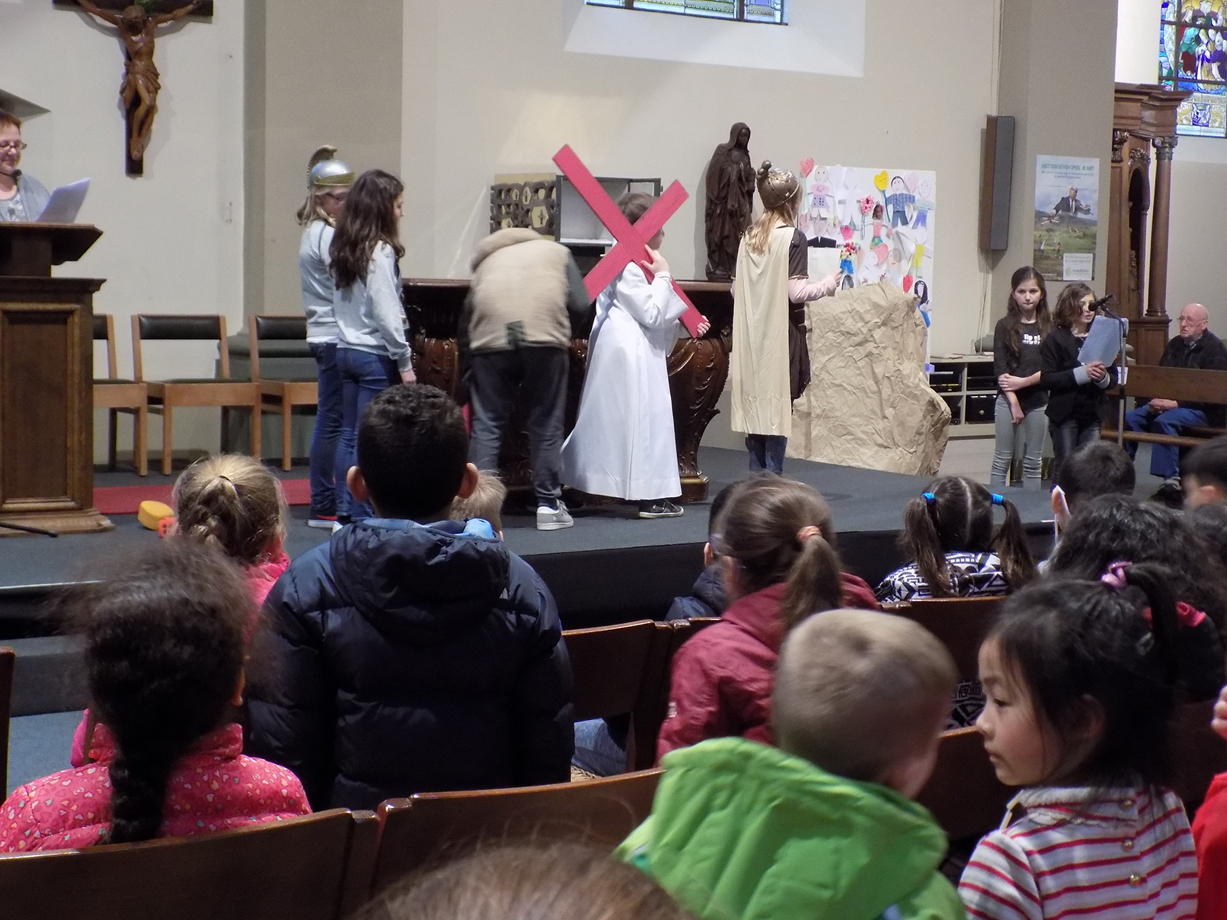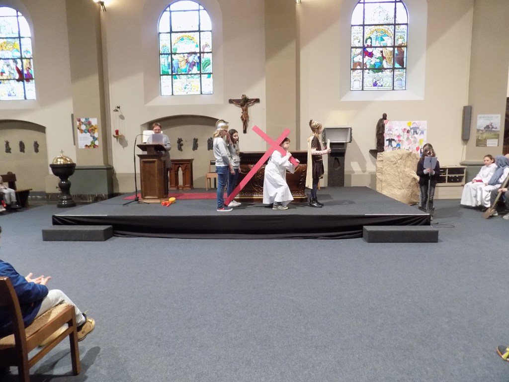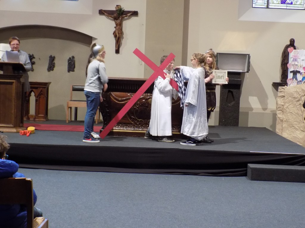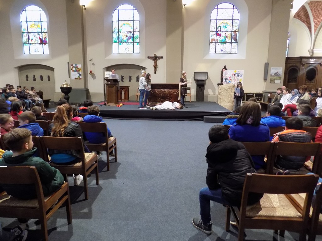 Wanneer jonge mensen – en in dit geval kinderen van de Sint Michielsschool Winterslag – de kruisweg uitbeelden, kunnen we alleen maar blij zijn met zo’n inzet.
