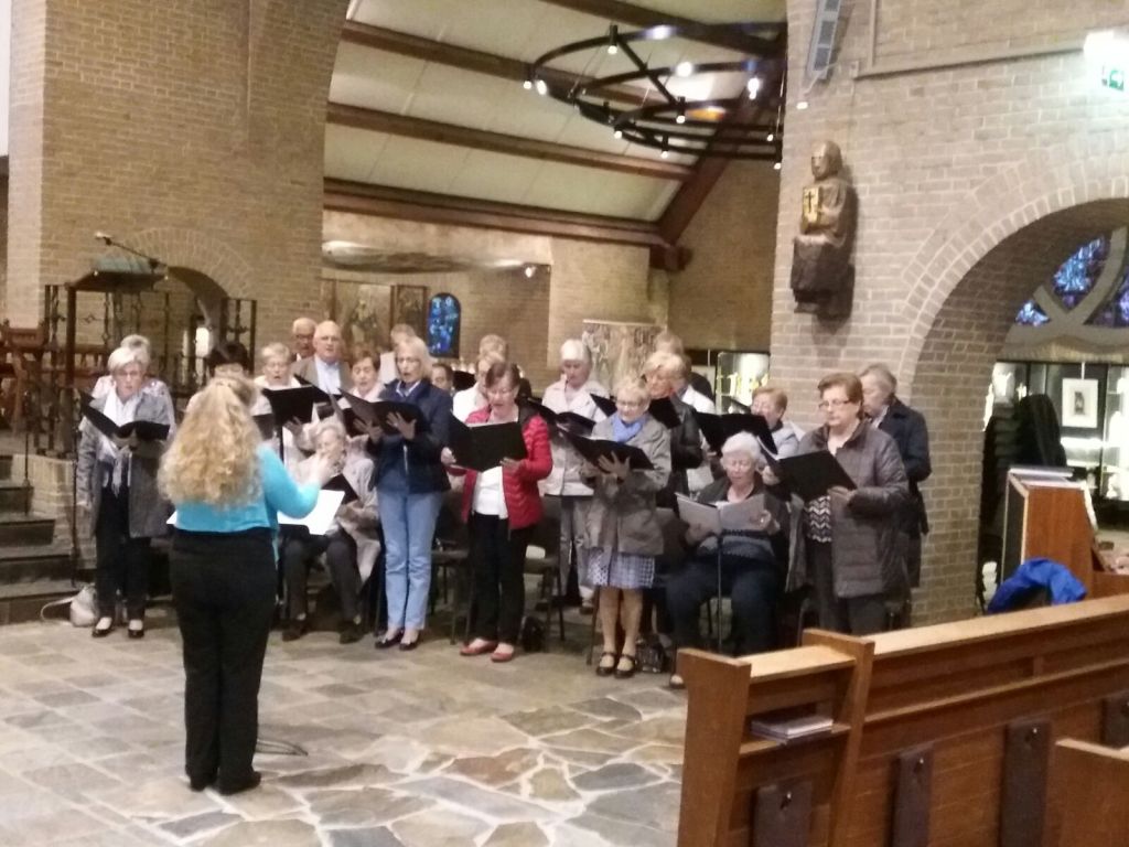 Ons koor zorgde voor de muzikale omlijsting van de plaatselijke eucharistieviering. Nadien bedankte pastoor Van Oss ons voor de mooie uitvoering. Hij was vooral onder de indruk van het grote dankgebed.