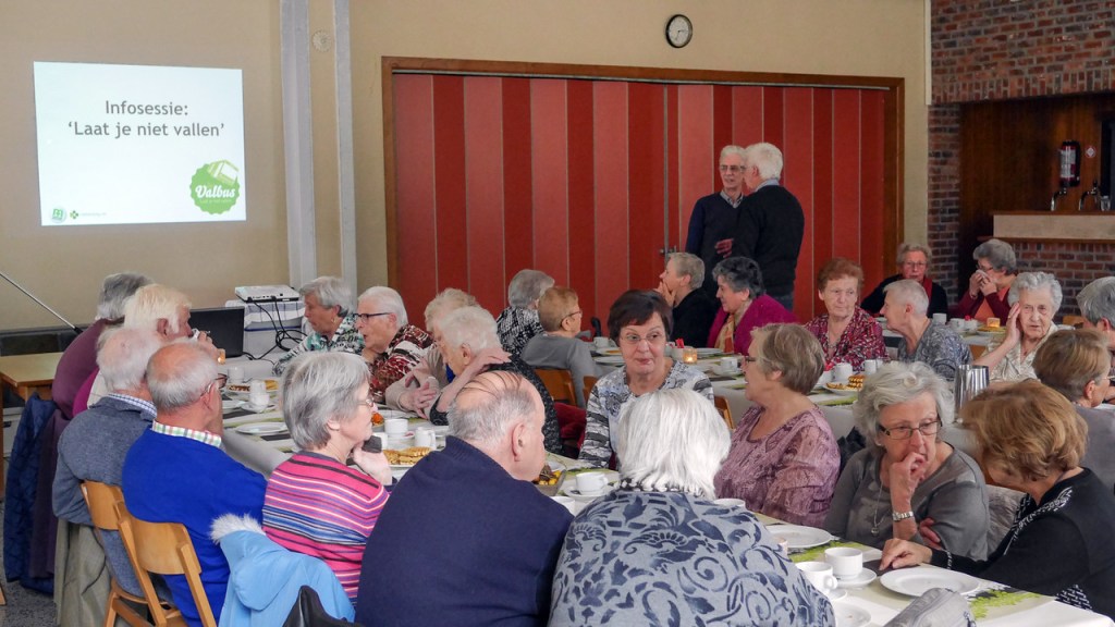 Nadien hield de heer Richard Lehaen een uitgebreide uiteenzetting over ‘valpreventie’, een thema dat de genodigden toch aanbelangt. (Voor geïnteresseerden: hier vind je een folder met info over vallen en valpreventie.)