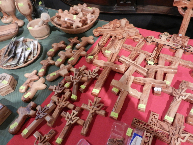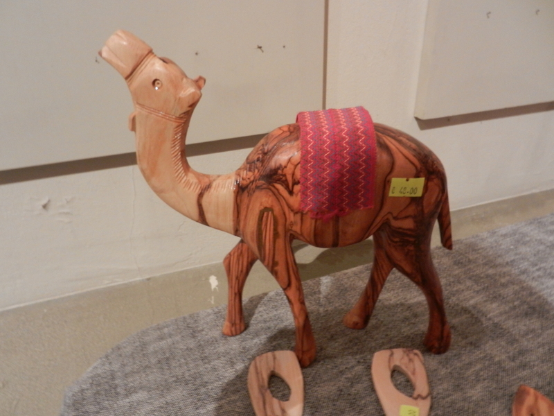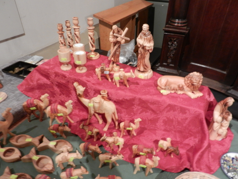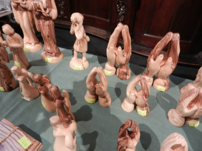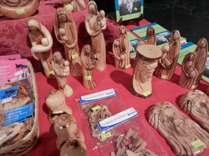 Alle houtsnijwerk komt uit hout van de ‘olijfboom’. Het wordt met de hand uitgesneden en bewerkt. De opbrengst gaat integraal naar de Palestijnse christenen. De verantwoordelijke van de stand vertelde me dat de invoerrechten en andere kosten volledig door mensen uit Vlaanderen wordt betaald, zodat hun vrienden en ook de onze, in het verre oosten middelen krijgen om menswaardig(er) te leven. Solidariteit met de zwakken is toch een van fundamenten van ons geloof, niet?