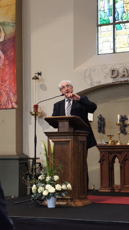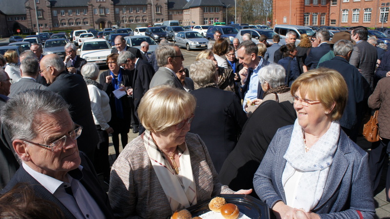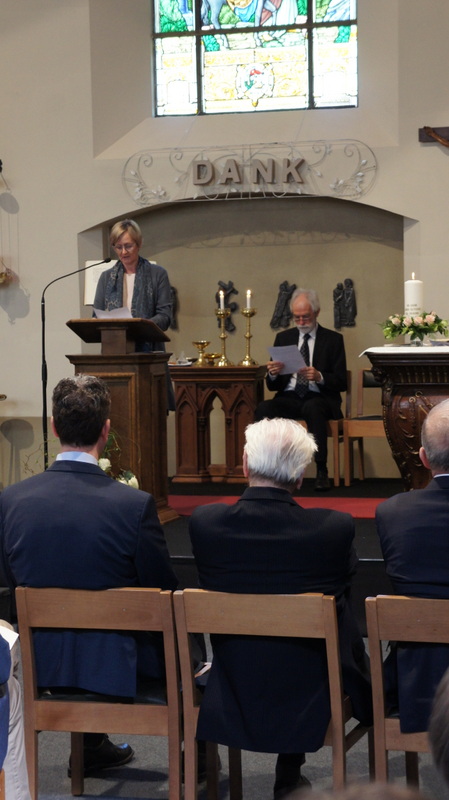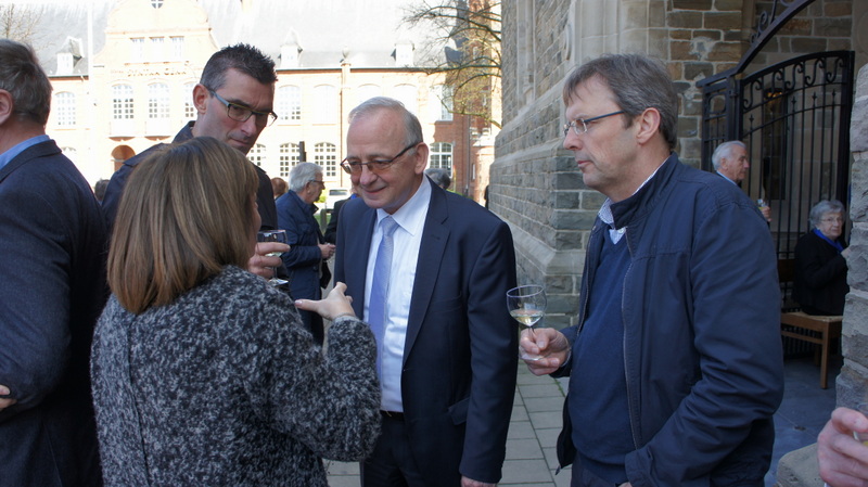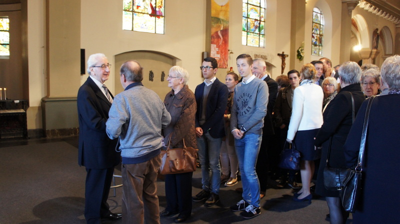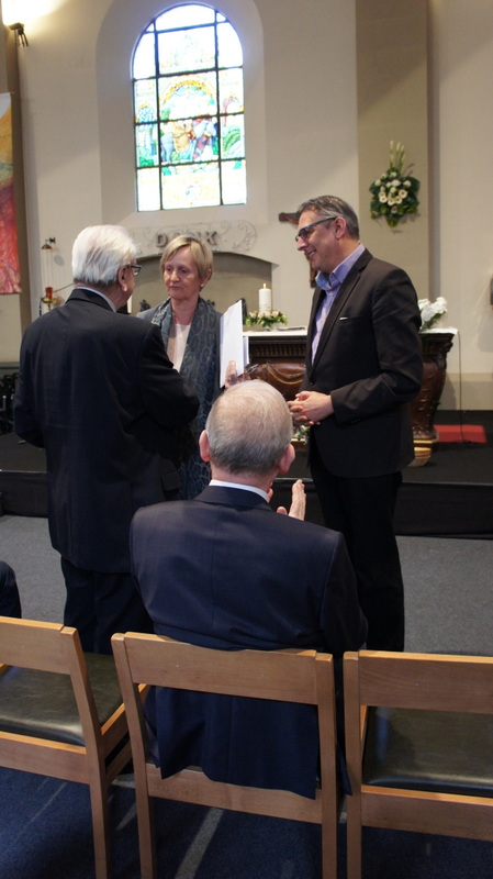 Na de eucharistieviering was er een korte academische zitting waarop o.a. mevr. Ria Grondelaers, schepen van eredienst en voorzitter van het OCMW, het woord nam. Zij beschreef de ‘loopbaan’ van de jubilaris, de verschillende stappen in de renovatie van onze kerk en keek vooruit naar een mogelijk briljanten priesterjubileum.