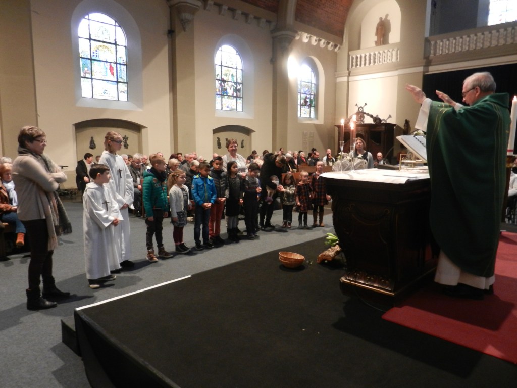 Tijdens de eucharistieviering op zondag 4 februari 2018, verwelkomden we de eerste communicantjes. Zij zetten hun eerste stappen in de voorbereiding op hun hoogdag. Zij verkenden, voordat de viering begon, samen met hun juffen de kerk, ontdekten er nieuwe plekken en leerden de betekenis ervan. Tijdens de eucharistieviering werden zij en alle andere kinderen de handen opgelegd en gezegend. Ook in de namiddag kwamen er ouders met hun spruiten opdagen om de zegen te ontvangen. Een aloude traditie die gekoesterd mag worden.