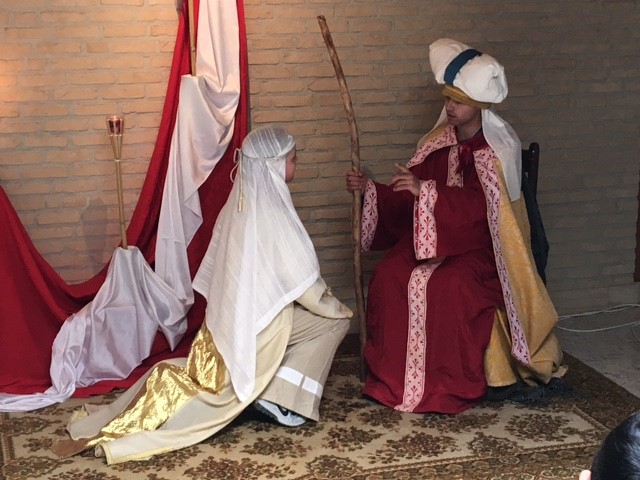 Gedurende de namiddag stond er een toneelvoorstelling op het programma, maar niet zomaar een! Het Bijbelverhaal over de ‘roeping van Samuel’ stond centraal. Samuel wordt als kind toevertrouwd aan de Eli, de hogepriester. Als jongeman wordt Samuel door God geroepen. Dit verhaal past overigens naadloos bij het jaarthema van ons bisdom, nl. ‘Je bent bemind. Je bent geroepen’.