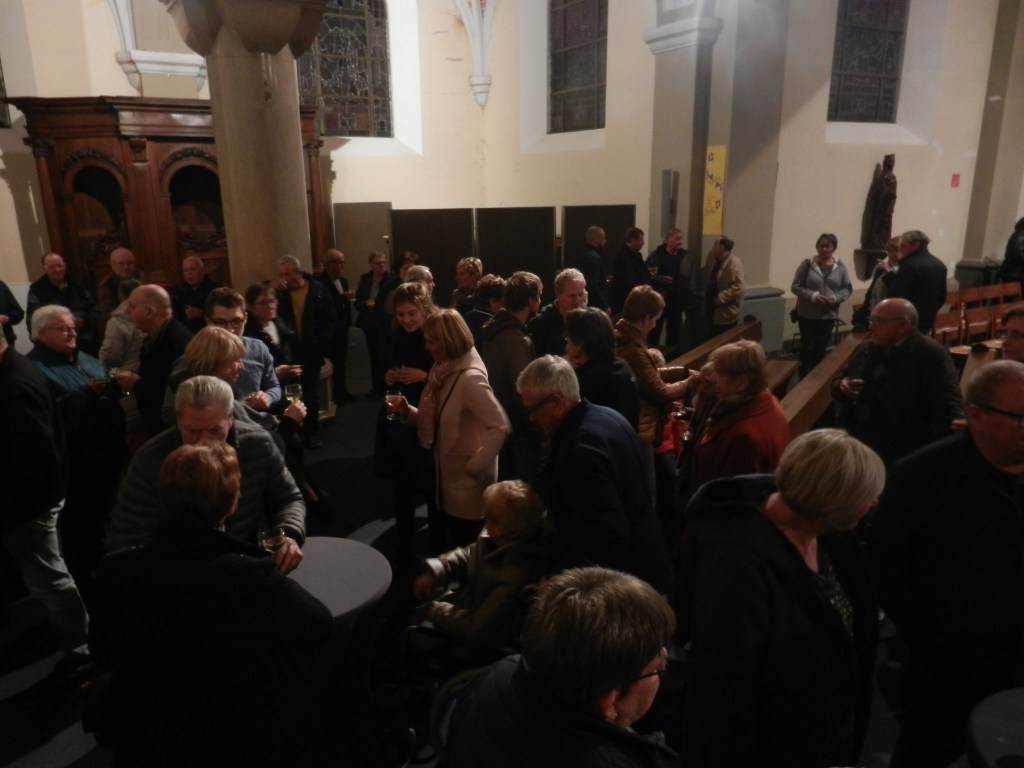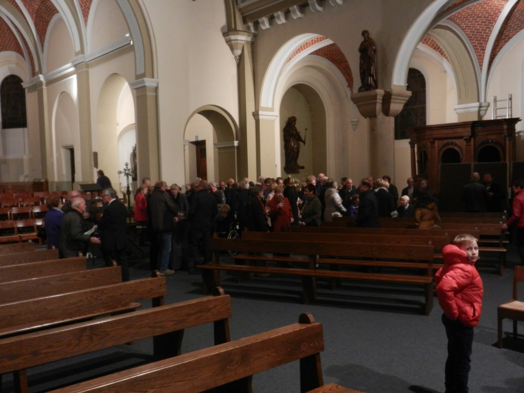 Na de viering werden de kruisjes met hun namen aan de familie meegegeven. Ook werden de aanwezigen uitgenodigd om nog even te blijven. Effe wat herinneringen ophalen bij een drankje, een woord van troost geven. Een gevoel van samenhorigheid, van ‘we staan er niet alleen voor’, maakt ons als parochiegemeenschap solide en bestendig. Het was een mooie viering.