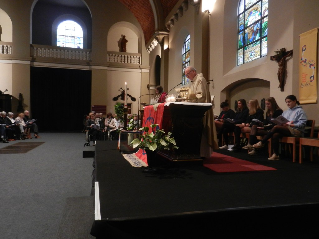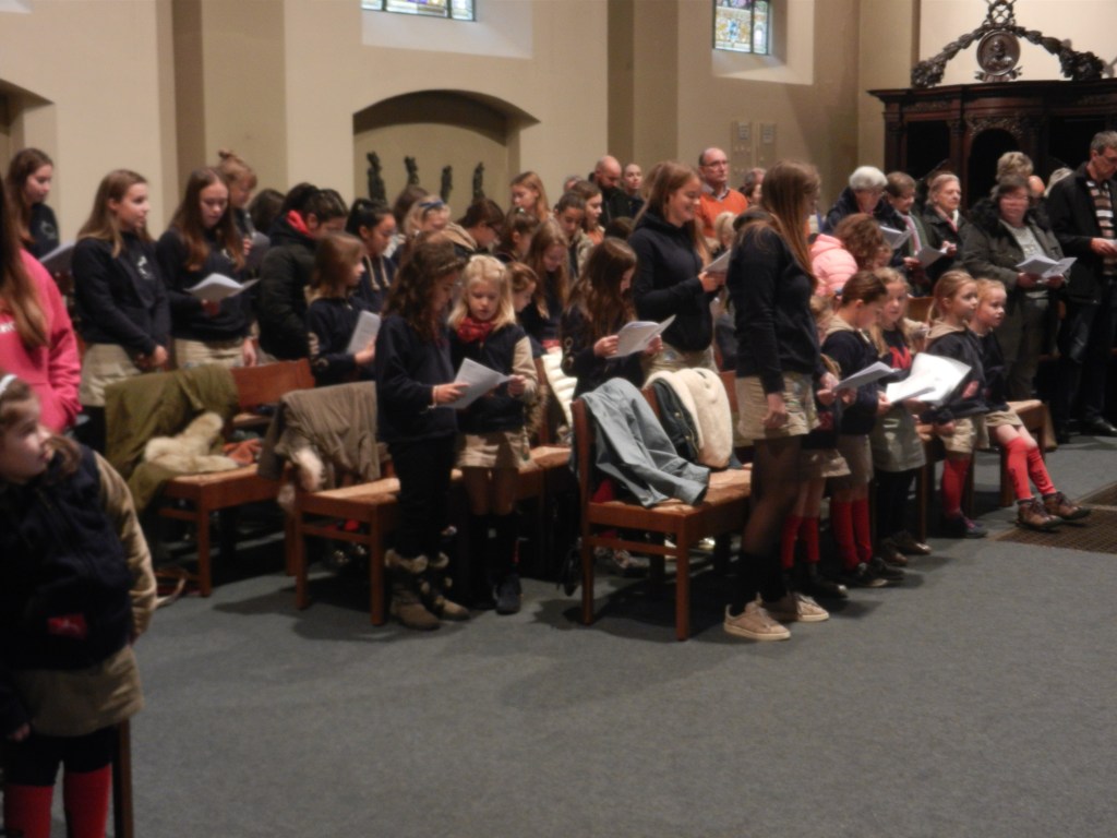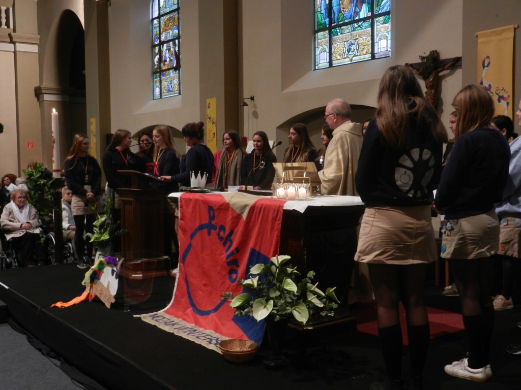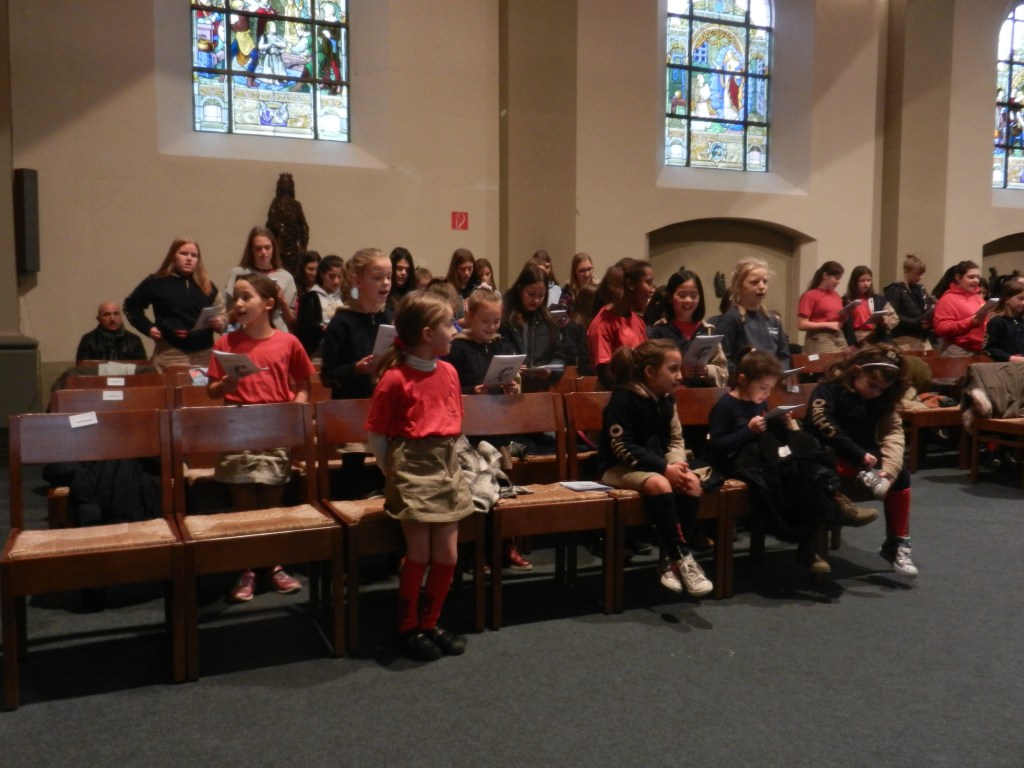 Zondag 25 november 2018. Het is 10.30 u. en ik zat in de H.-Hartkerk Winterslag-Genk. Een prettig geroezemoes verspreidde zich gaandeweg doorheen onze kerk. Zowat 128 stoelen werden voorbehouden! We vierden Christus Koning en dan mag je ervan op aan dat de Chiromeisjes op post zijn.