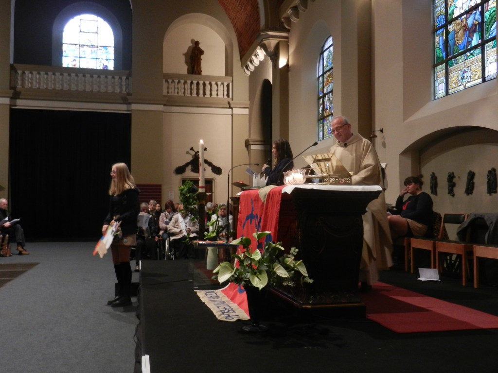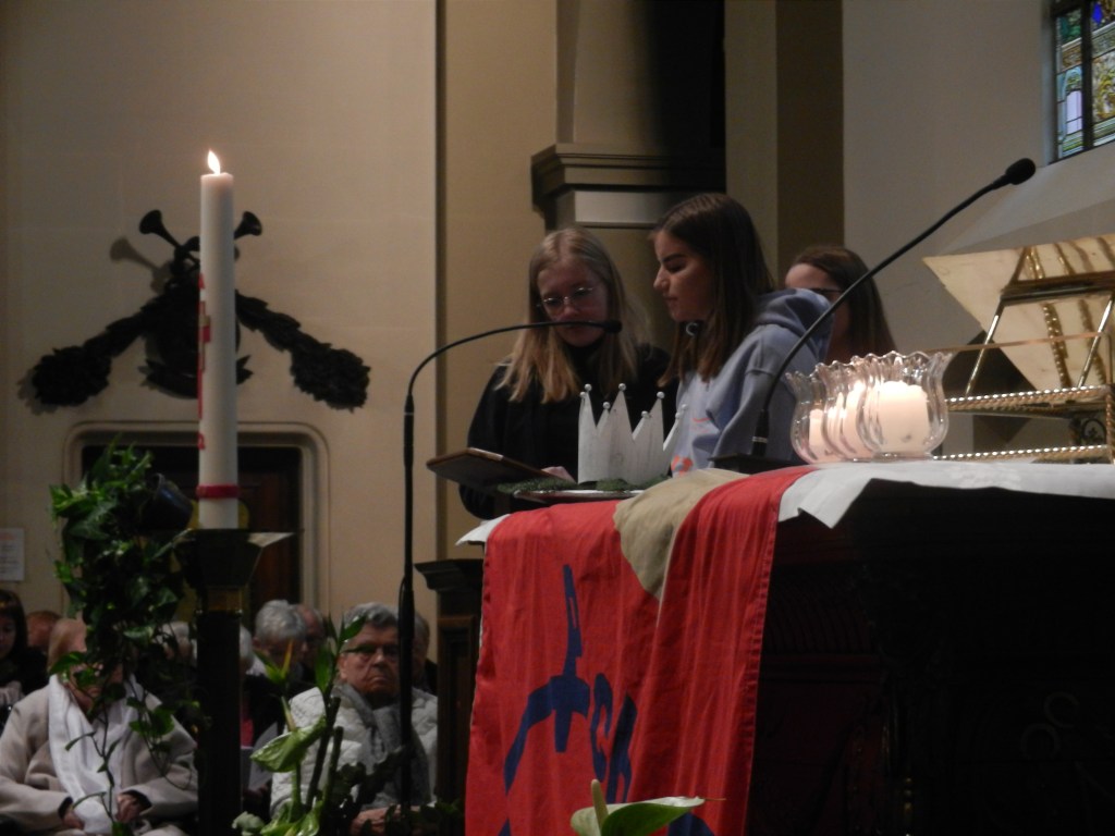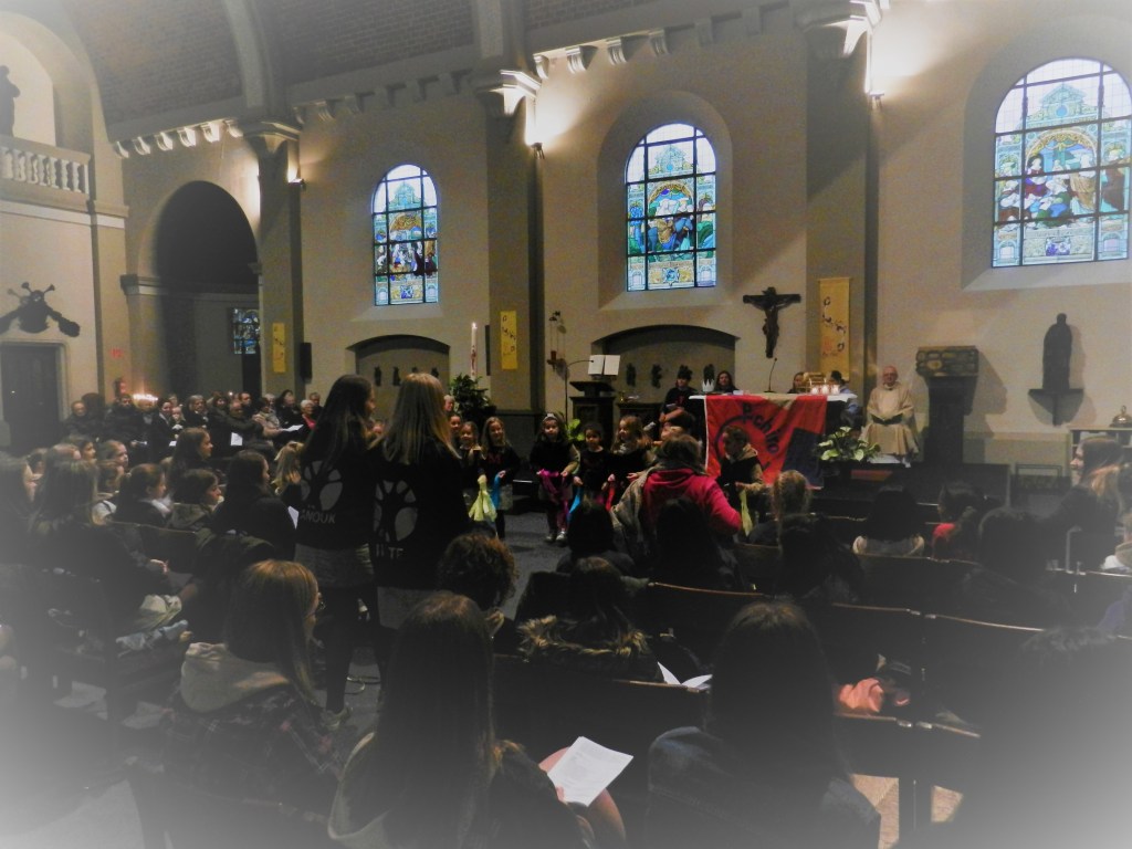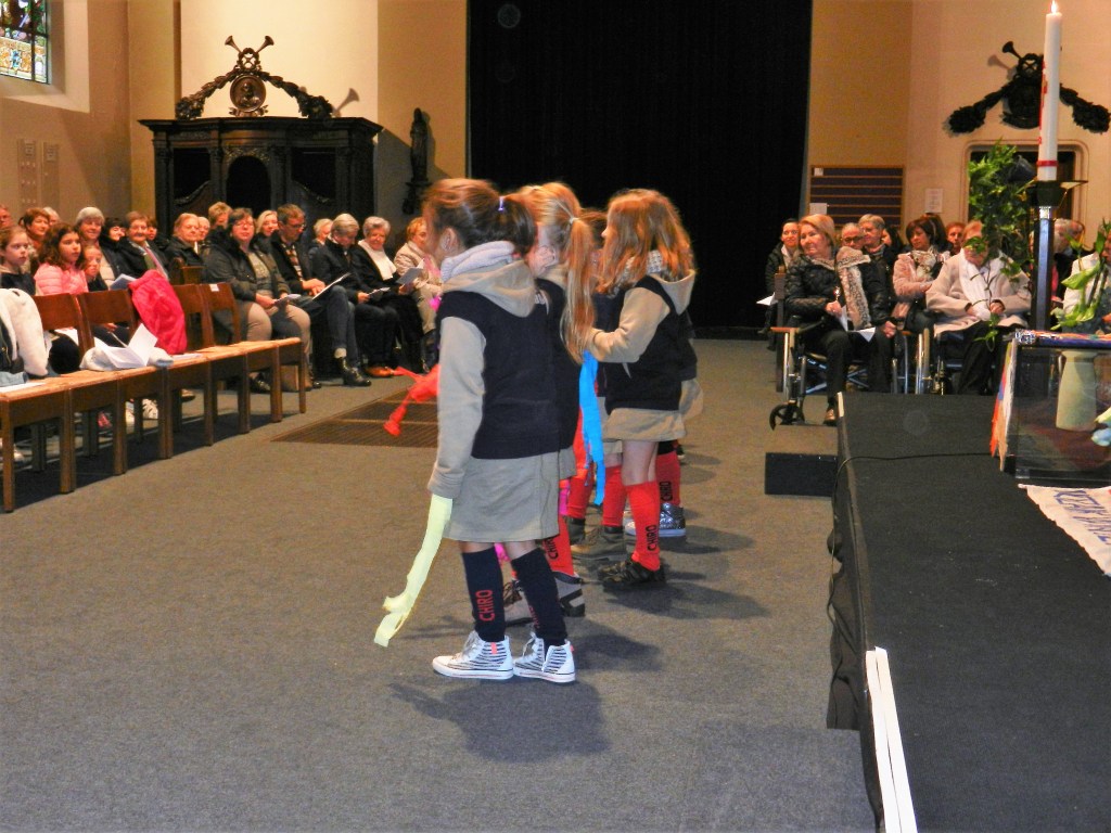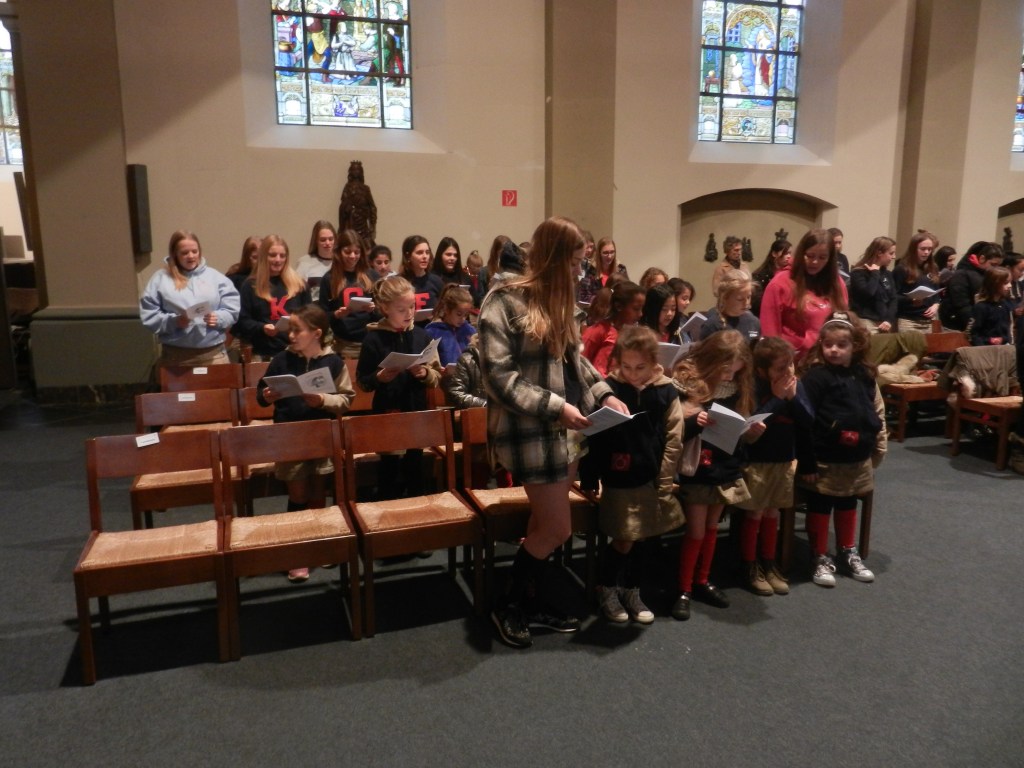 Zondag 25 november 2018. Het is 10.30 u. en ik zat in de H.-Hartkerk Winterslag-Genk. Een prettig geroezemoes verspreidde zich gaandeweg doorheen onze kerk. Zowat 128 stoelen werden voorbehouden! We vierden Christus Koning en dan mag je ervan op aan dat de Chiromeisjes op post zijn.