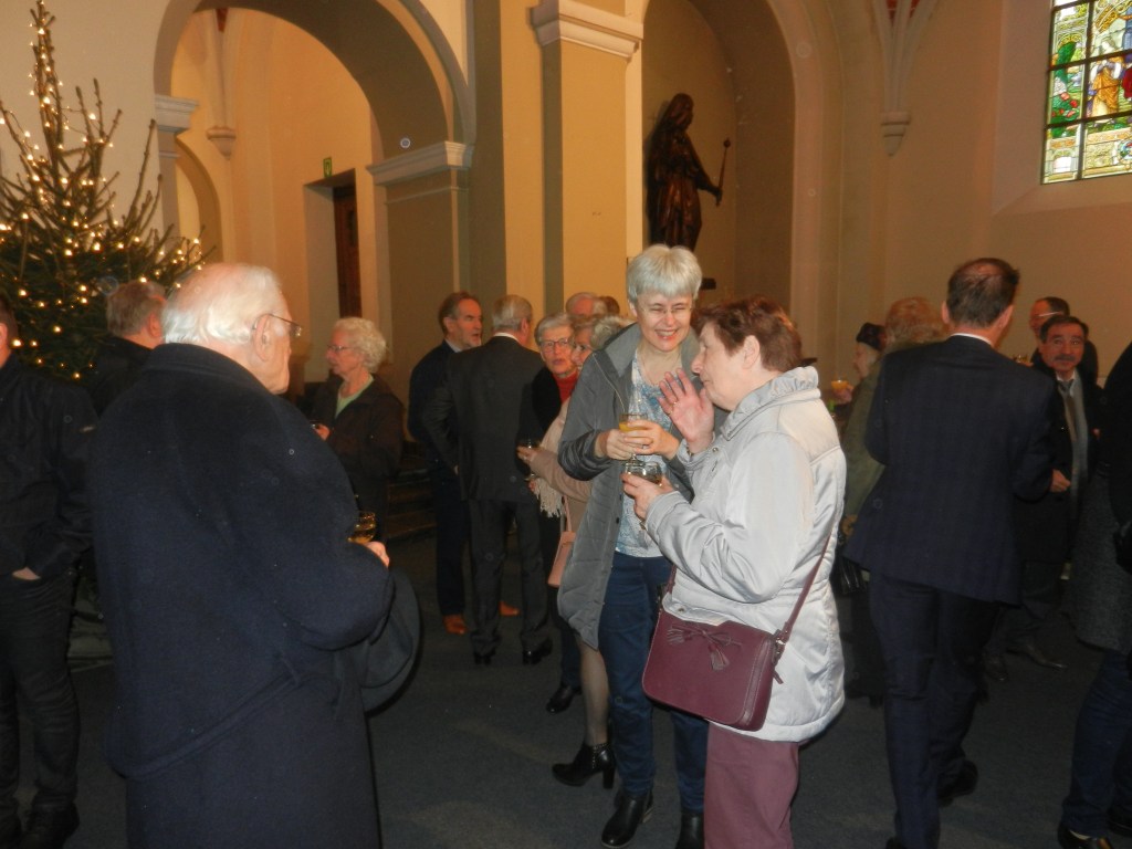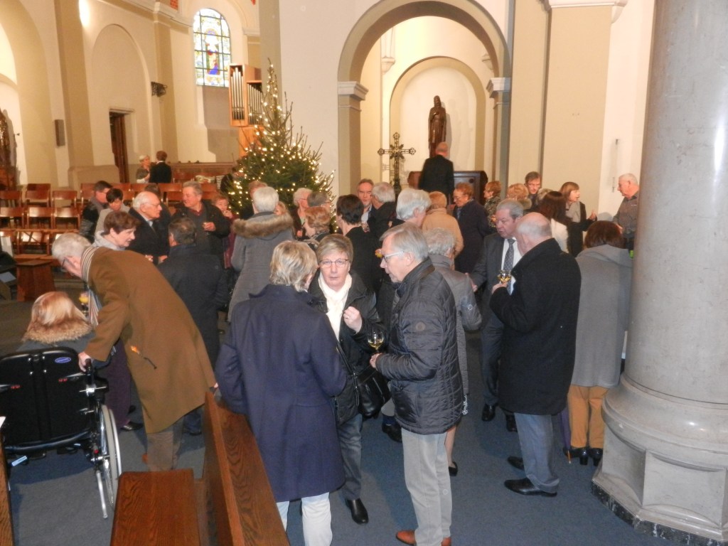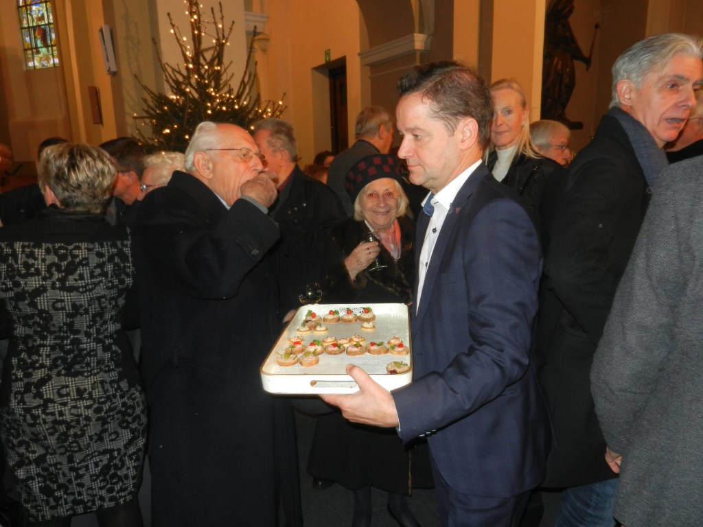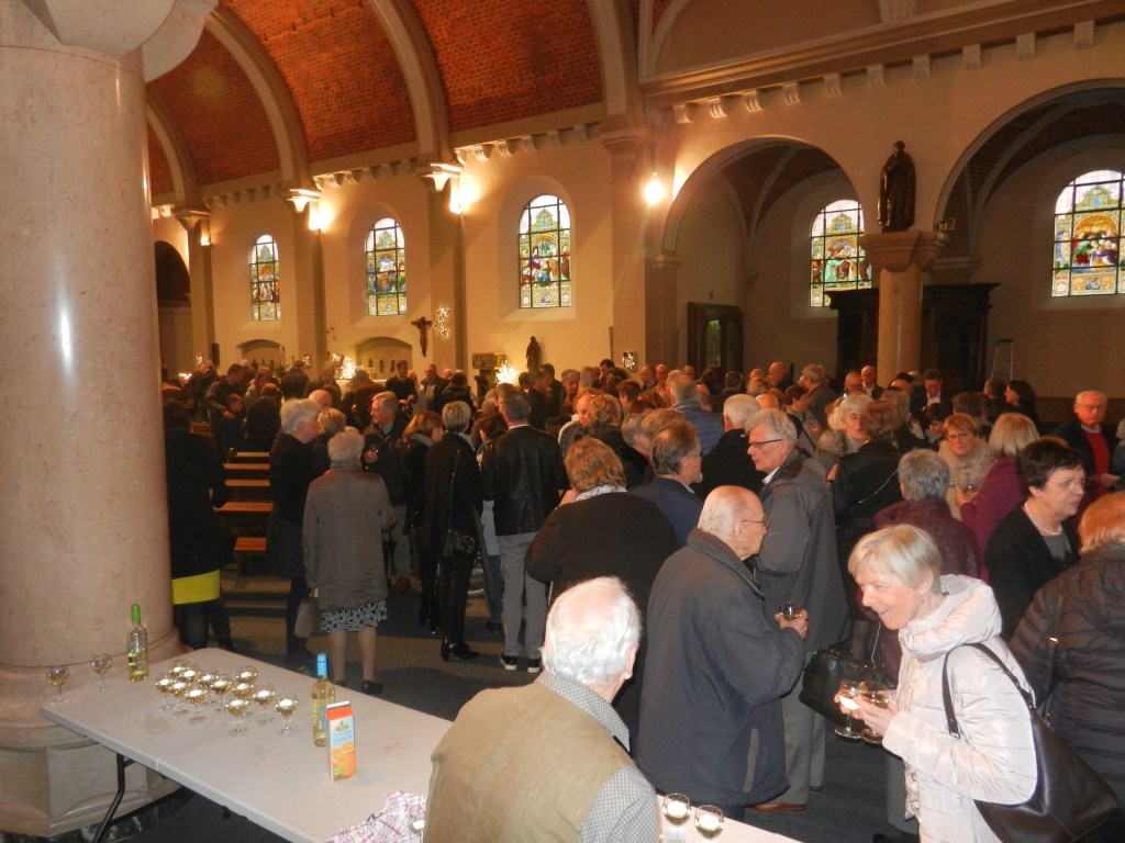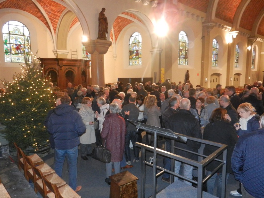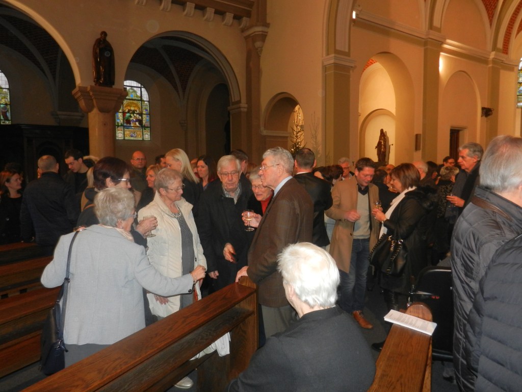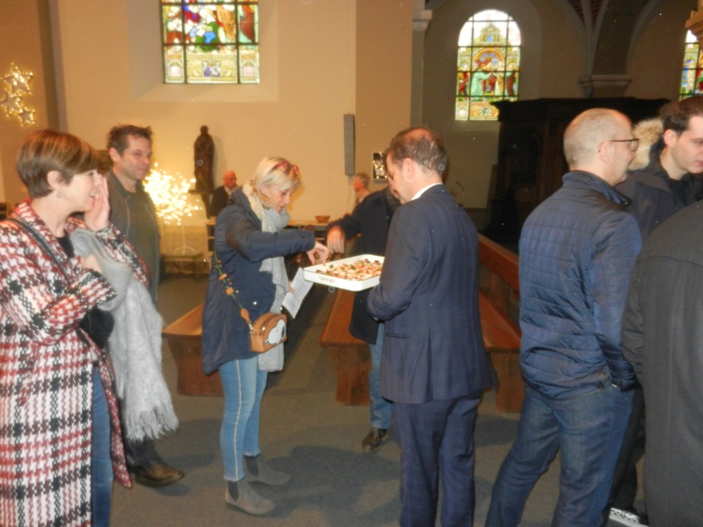 Onze pastoor nodigde de aanwezigen – en wat waren we met velen, niet? – uit om na de eucharistieviering een glas te drinken, te proeven van die heerlijke toastjes, maar vooral om elkaar te vinden … tegen het lijf te lopen … kortom, elkaar te ontmoeten en meteen de beste wensen voor 2019 over te brengen. ’t Was weer top, gezellig en zeker voor herhaling vatbaar.