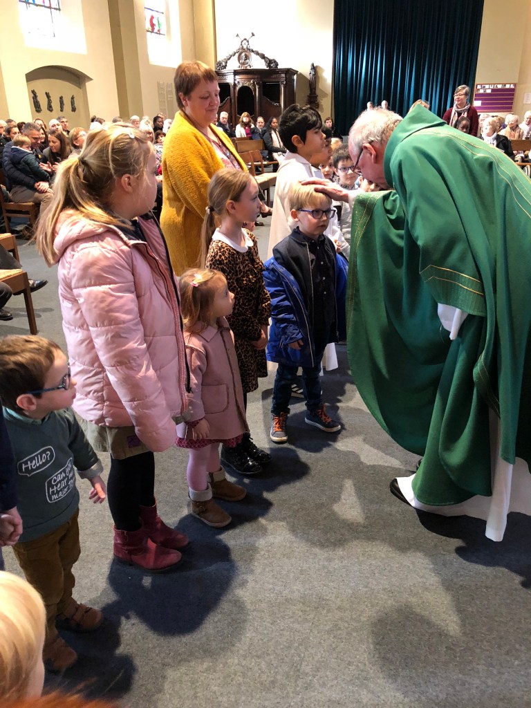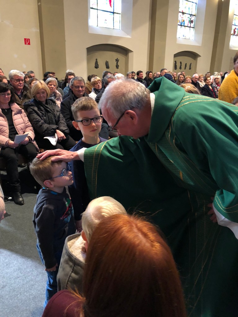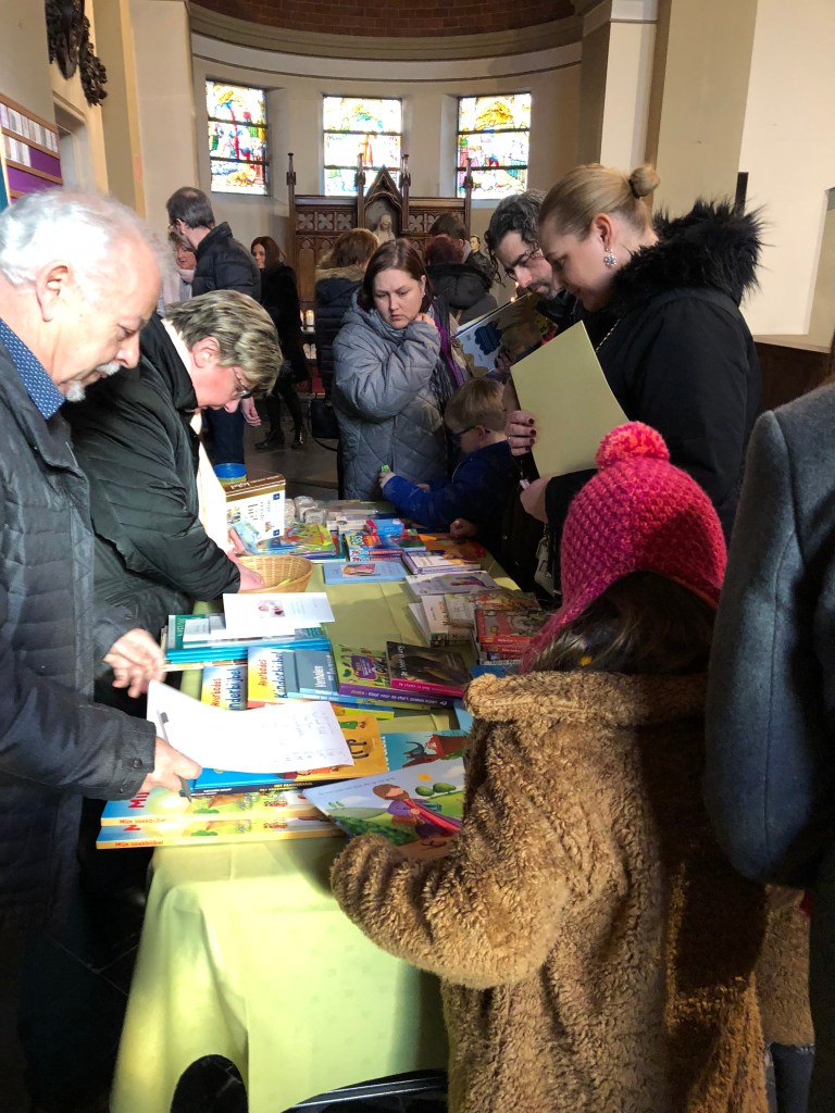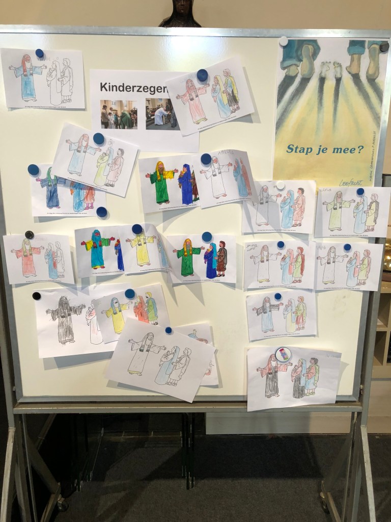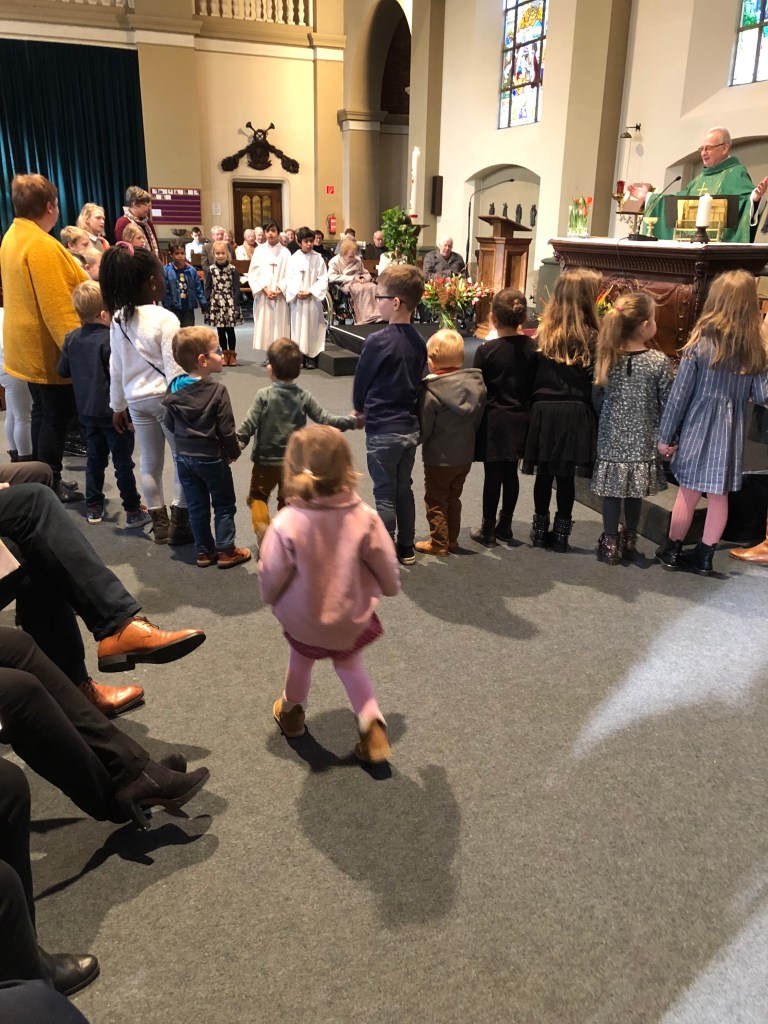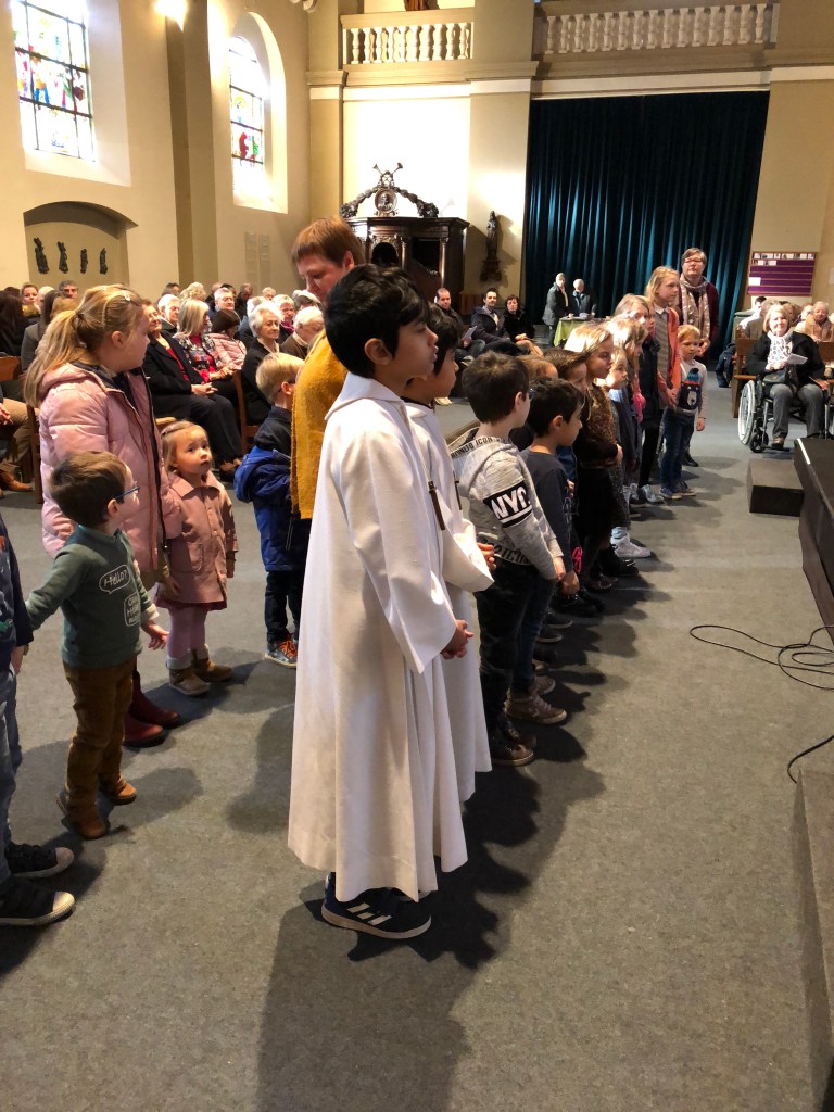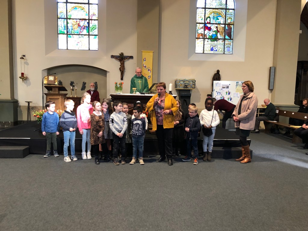 Als parochie nodigden we de eerste communicanten en hun ouders uit. Om 10.30 u waren ze al present. Onder de deskundige leiding van de juffen van het eerste leerjaar kregen ze ter kennismaking een rondleiding in onze kerk. Aan het einde van de viering was er de kinderzegen. Als kerkgemeenschap willen we zo stilstaan bij de betekenis van de komst van een kind in het gezin.