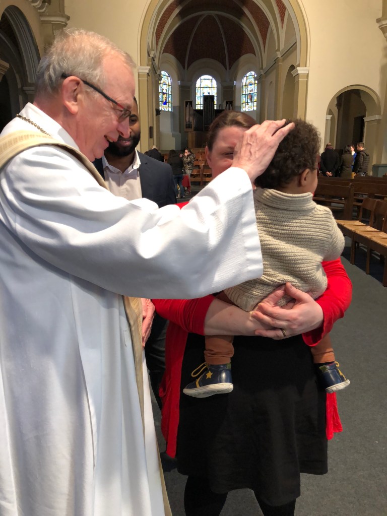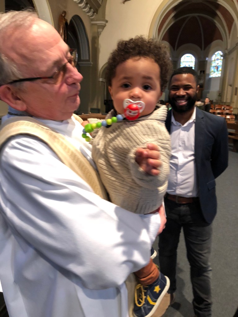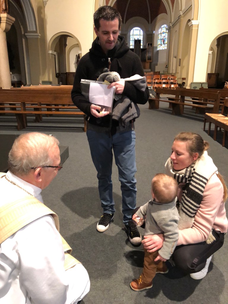 Ook in de namiddag brachten ouders wiens kind het voorbije jaar gedoopt werd, een bezoekje aan onze kerk. Ook hun kinderen werden gezegend.