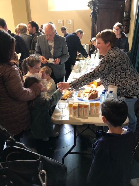 Na de eucharistieviering verwelkomden deze kinderen, hun ouders én hun juffen ons op een lekkere kop koffie mét zelfgebakken cakes in alle groottes en kleuren. Het was prettig om kennis te maken met deze groep jonge ouders en hun kinderen.