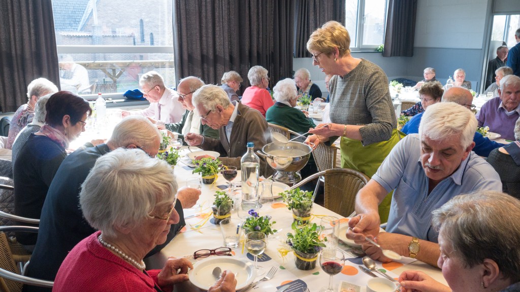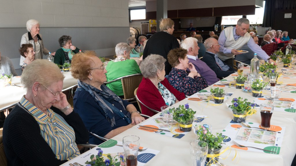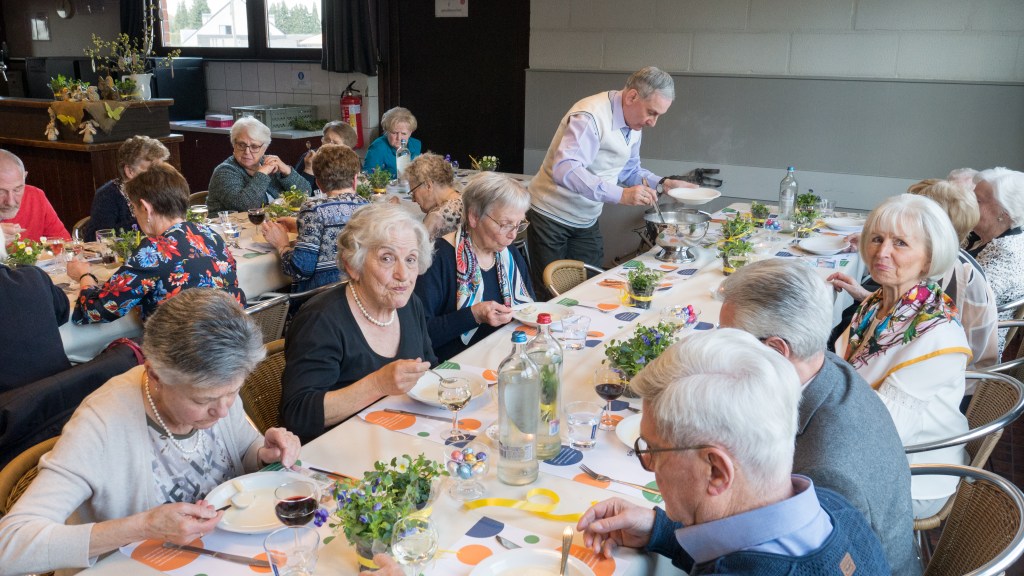 Het was een gezellige bende. Veel geroezemoes en al snel werden de laatste nieuwtjes uitgewisseld, en dat kon het best met een kop koffie, koekjes en lekkere chocoladen eieren. Nadat de voorzitter iedereen welkom heette en de gasten doorheen de namiddag loodste, was het tijd om de stemmen te smeren. Hugo en Jempi, gewapend met hun accordeons, wisten de zaal te boeien met een programma van zowel hedendaagse als muziek uit de oude doos. En daar krijg je honger van, niet?