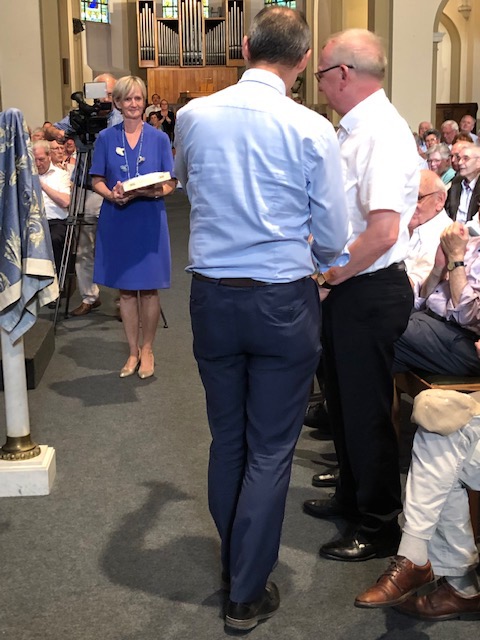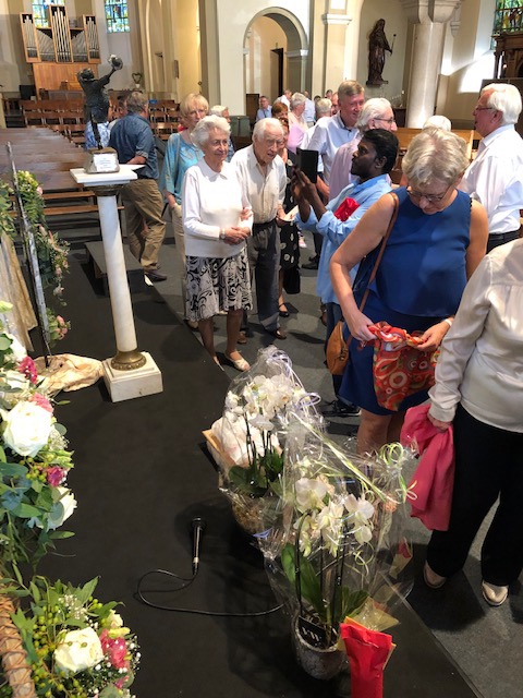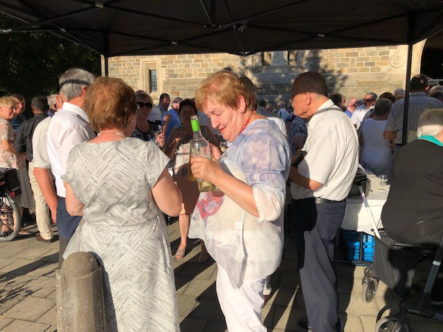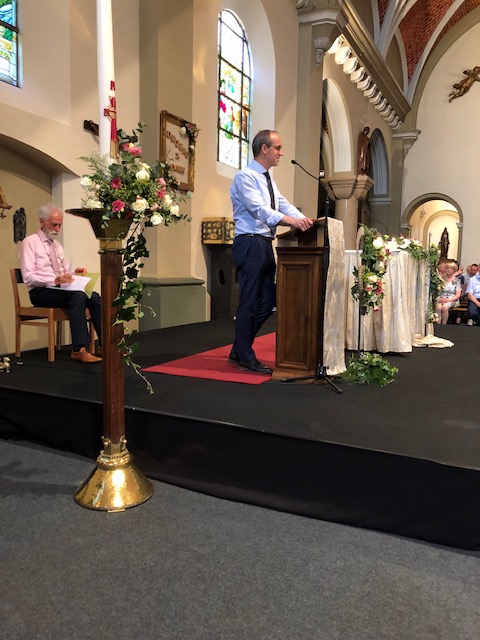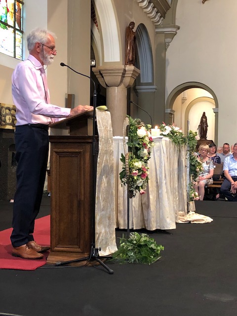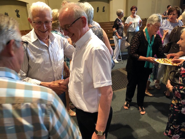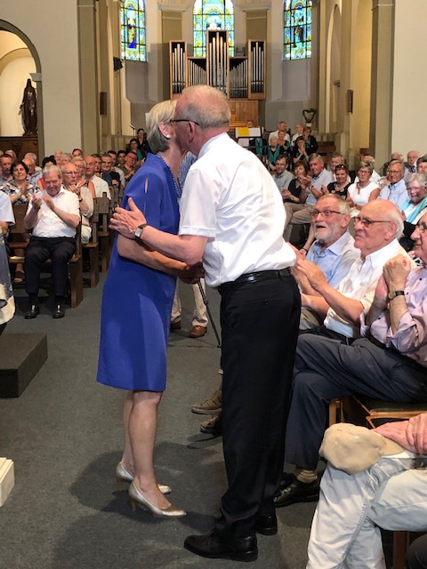 In naam van de hele geloofsgemeenschap uit onze federatie Genk-West, wil ik jou onze dankbaarheid heel graag overmaken voor de vele jaren dat je onze priester bent geweest op tal van plekken, voor je engagement, voor de vele eerste communie- en vormselvieringen, de doopplechtigheden en huwelijksinzegeningen, voor je bezorgdheid voor de vluchtelingen in Genk. En ik realiseer me dat ik hier maar een fractie van jouw daden opsom, maar weet dat we ze in ons hart sluiten.