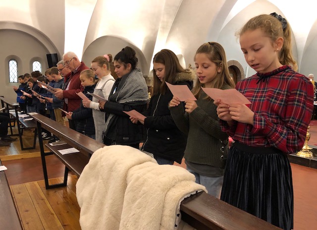 Op zondag 8 december, de tweede adventszondag, stonden 15 meisjes en jongens van de vormselcatechese in het middelpunt. Bij hun doopsel werd hun naam door de ouders aan de gemeenschap bekend gemaakt. Tijdens deze viering gaven zij zelf hun eigen naam op als bevestiging dat zij op weg gaan naar hun vormsel. Maar dat kunnen zij niet alleen. Zij hebben daartoe de steun en hulp nodig van hun ouders en van de hele parochiegemeenschap.