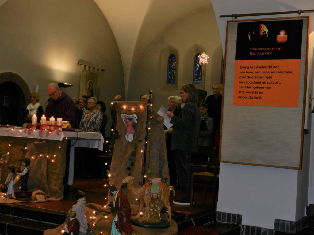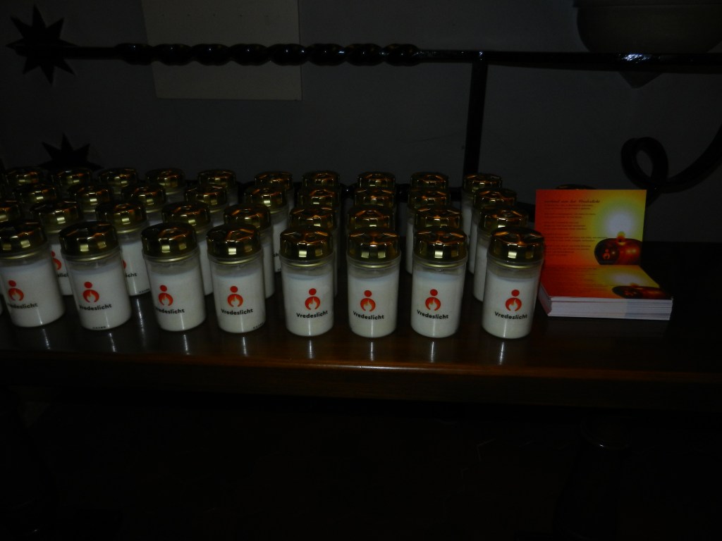 Op zondag 22 december werden in de drie diensten van onze parochie vredeskaarsen verkocht. Aan het einde van de eucharistieviering kregen de aanwezigen het vuur mee, met de boodschap, om het Vredeslicht naar een buur, een zieke, een eenzame, over de grenzen heen van godsdienst en cultuur te brengen.