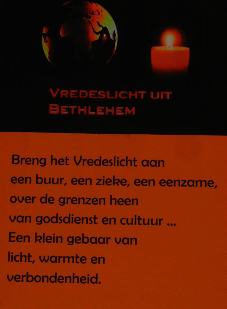 Op 1 december werd in de geboortegrot van Bethlehem een kaars ontstoken: het Vredeslicht. Van daaruit werd het licht wereldwijd verspreid. Via Oostenrijk naar Eupen en vervolgens onder meer naar Genk.