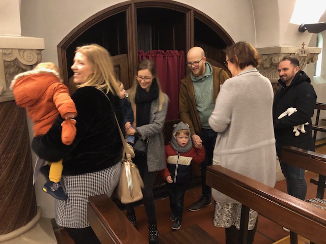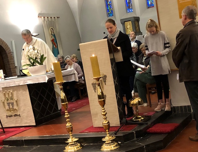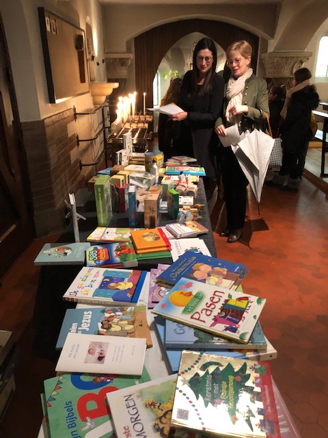 In de namiddag werden alle ouders én dopelingen van 2019 verwelkomd om ook hun kleine ukjes te laten zegenen. Er werd hen ook iets te drinken aangeboden, een prima moment om elkaar echt te ontmoeten. Op een grote tafel lagen een heleboel boeken en dergelijke. De interesse was groot en sommigen verlieten de kerk, met onder hun arm een kinderboekje of een bijbel … Misschien vertrokken ze naar huis om lekkere pannenkoeken te eten. Ook zo’n typisch gebruik op Lichtmis.