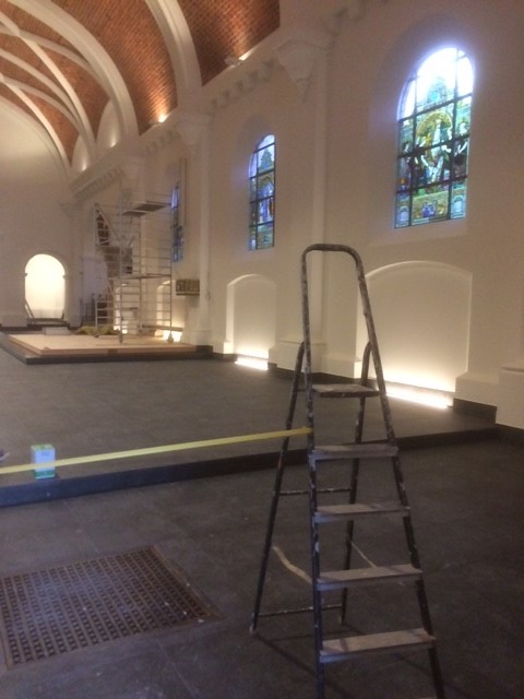 Op deze manier wil ik jullie laten kennis maken met het nieuwe interieur van onze H.-Hartkerk, nog niet ingericht, maar het geeft al een goed idee, niet? De meeste werkzaamheden zijn beëindigd. De ‘grote kuis’ en het inrichten van de kerk staan nu op de agenda. Maar je kan toch al even meegenieten via enkele foto’s. We zien elkaar terug in een spiksplinternieuwe kerk, wanneer we groen licht krijgen van de corona-specialisten. Tot dan!