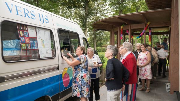 Geen probleem, want al snel werden de koude schotels, deskundig belegd met allerlei lekkers, opgediend. En aan verrassingen die namiddag geen gebrek, want er reed zowaar een ijskar voor. Er werd gezwind aangeschoven voor een lekker ouderwets ijsje … en geloof me, dat smaakte.