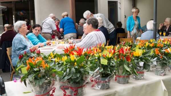Veel te snel werd het 18.00 u. Dankbaar en enthousiast nam iedereen afscheid, niet zonder een bloempje én een uitnodiging voor de ‘dag van de chronisch zieken’ op zondag 10 oktober. Om 11.00 u is er een eucharistieviering, gevolgd door een receptie en een tentoonstelling van kunstwerken van onze leden. Hopelijk zien we elkaar dan.