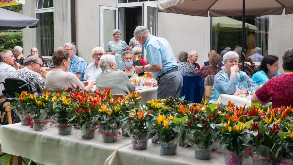 Dinsdag, 14 september, 14.00 u. De weergoden lijken gunstig gestemd, enkele druppels niet te na gesproken. 72 enthousiaste ‘Samanaleden’ maakten hun opwachting in de mooi versierde tuin van het parochiecentrum Het Park te Winterslag. In dit post coronatijdperk dé uitgelezen formule om eindelijk nog eens onder de mensen te komen.