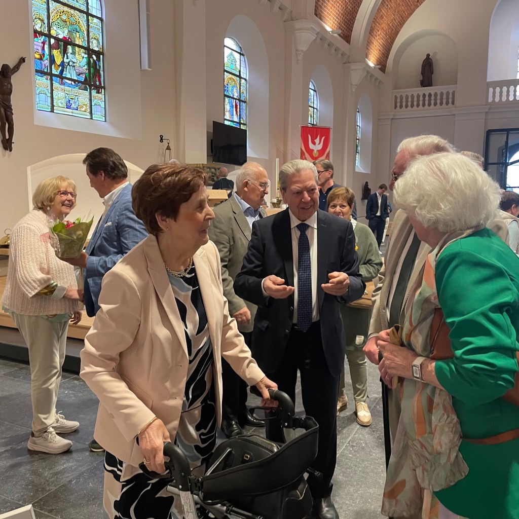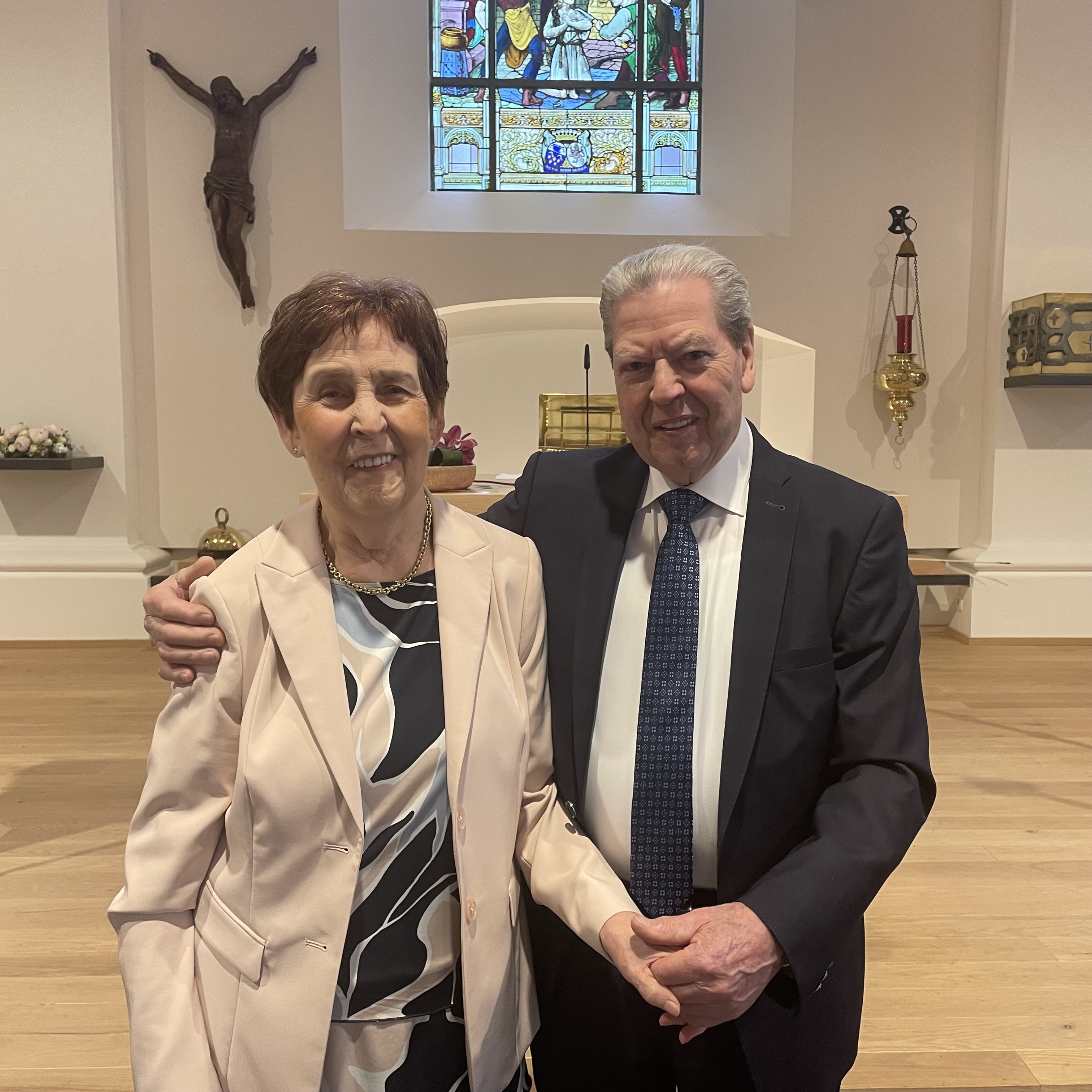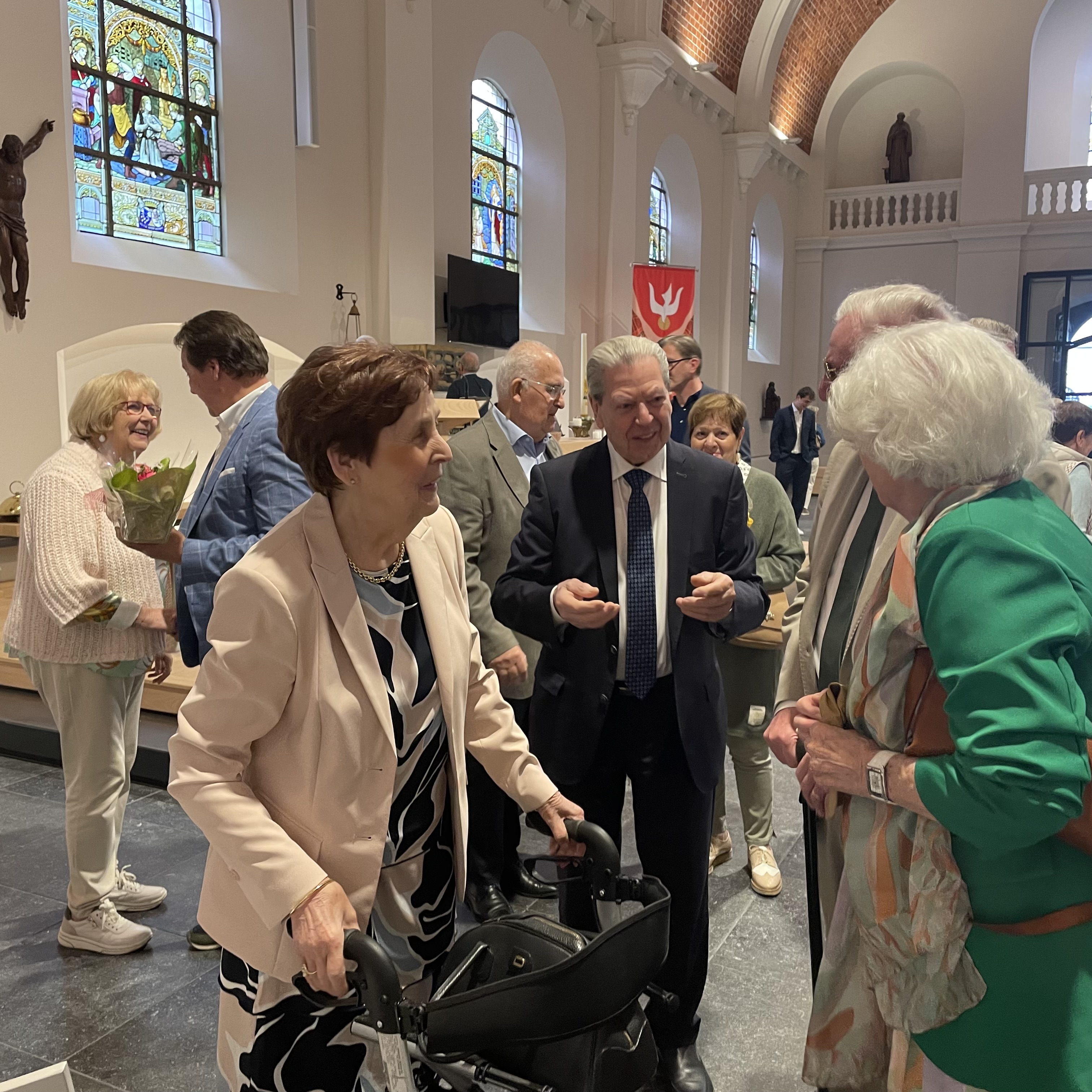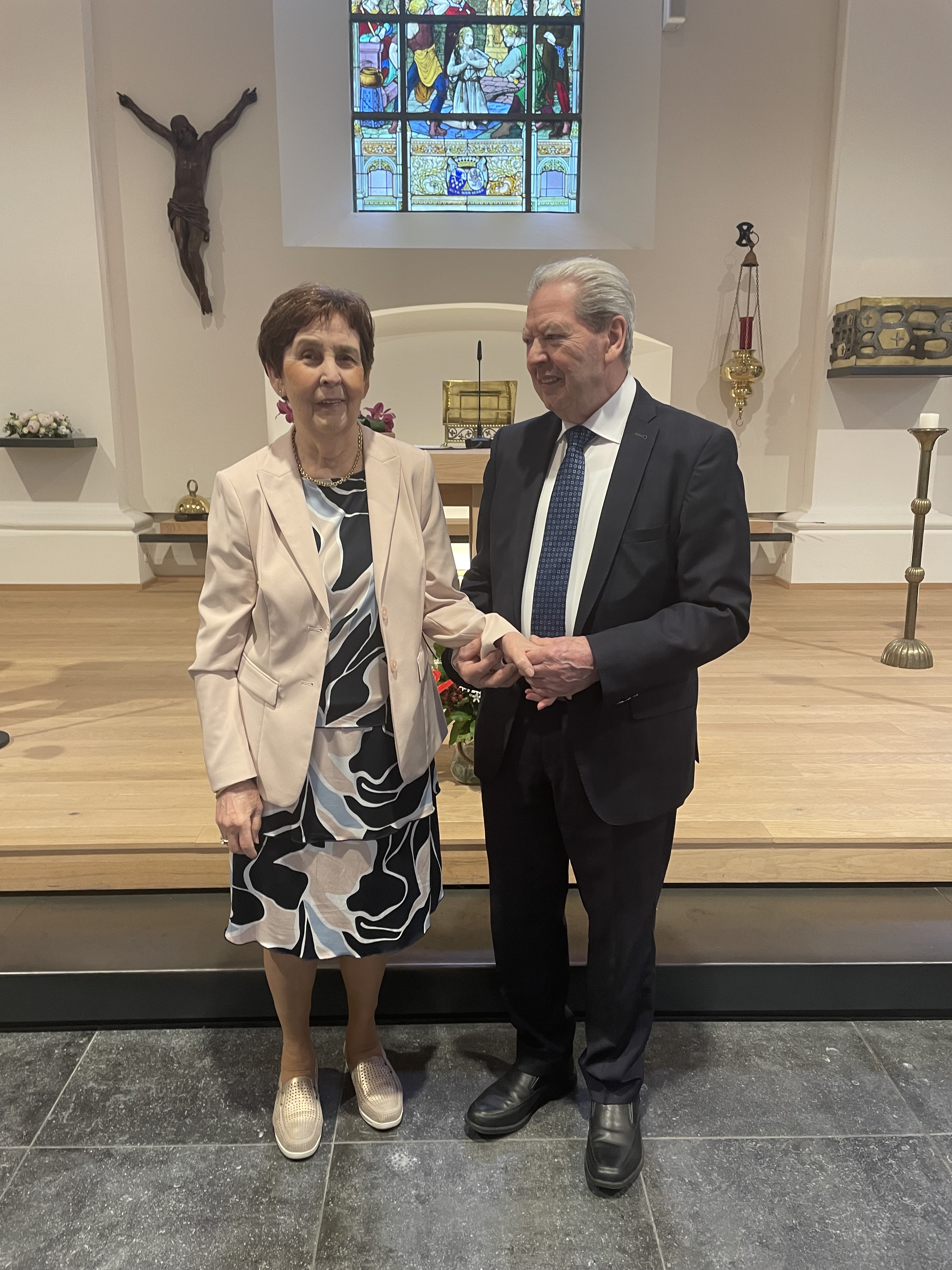 Mathieu en Jeanine Anthonissen zijn al zestig jaar samen onderweg. Dit hard werkende gezin, bekend van de garage op de Vennestraat, zijn al lang geen onbekenden meer in onze parochie. Ze komen sinds jaar en dag naar de kerk in Winterslag, Jeanine zingt ‘s zondags nog steeds mee in het koor, Mathieu is altijd paraat op zijn vertrouwde plekje in de zijbeuk. Ze maken trouw deel uit van onze gemeenschap.