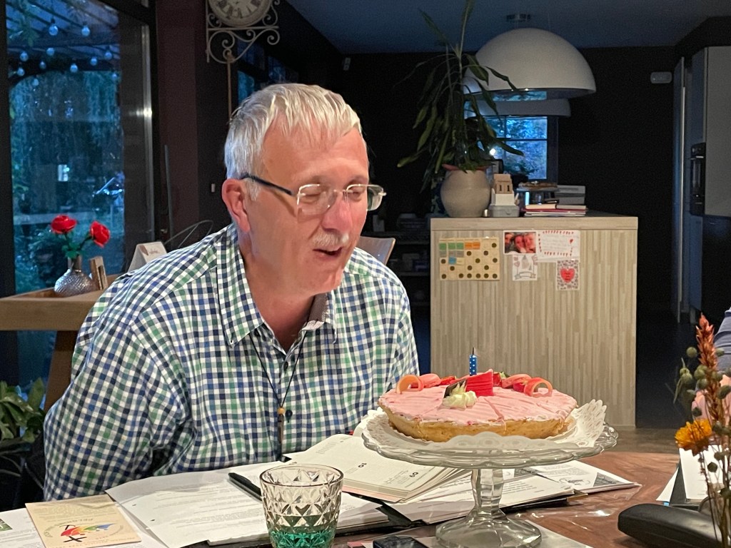 Tot slot war er ook tijd om te vieren. Geen hoogdag van een heilige, maar de verjaardag van pastoor Tjeu! Met een lekkere taart, voorzien van kaarsje en bijhorend gezang konden we ook hem even in de spreekwoordelijke bloemetjes zetten.