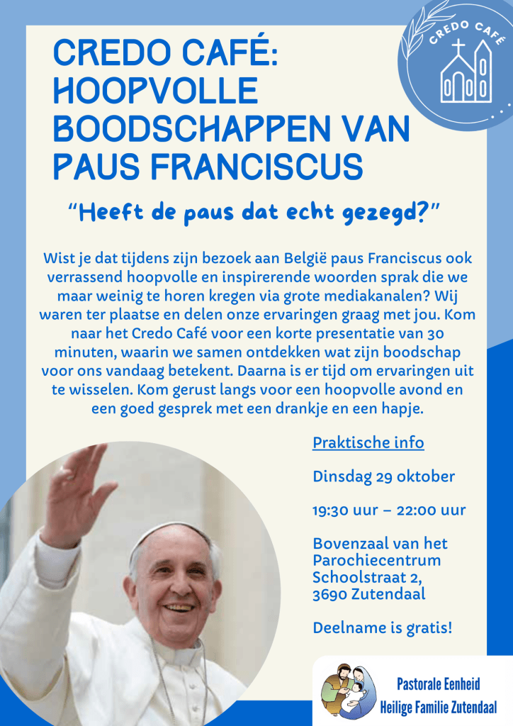 Zin om een keer van gedachten te wisselen aangaande het pausbezoek aan ons land? Dan is de volgende afspraak van het Credo Café misschien wel iets voor jou. Via een korte presentatie met daarna een goed gesprek bij een hapje en een drankje! Klinkt goed, niet?
