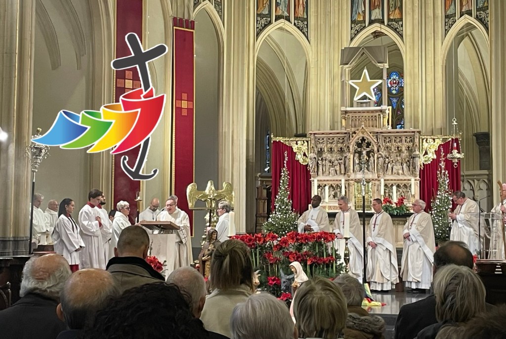 Eenmaal aangekomen, opent onze bisschop plechtig de deuren van de kathedraal. Net als de paus in Rome, klopt hij driemaal met de kruisstaf aan. De deuren openen en met de nodige wierook en gezangen treedt de menigte binnen. Zo ook de kerkbaljuw, uitgerust met hellebaard, die plechtig postvatte aan de rand van het altaar. Knap! De bisschop, bijgestaan door verschillende priesters, ging voor en samen mochten we een traditionele eucharistie vieren met de nodige pracht en praal.