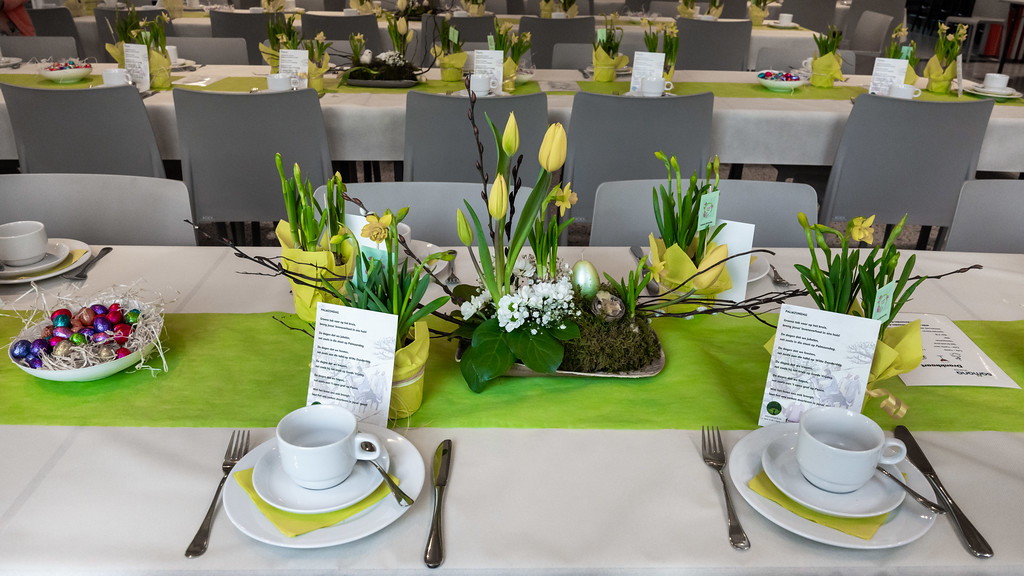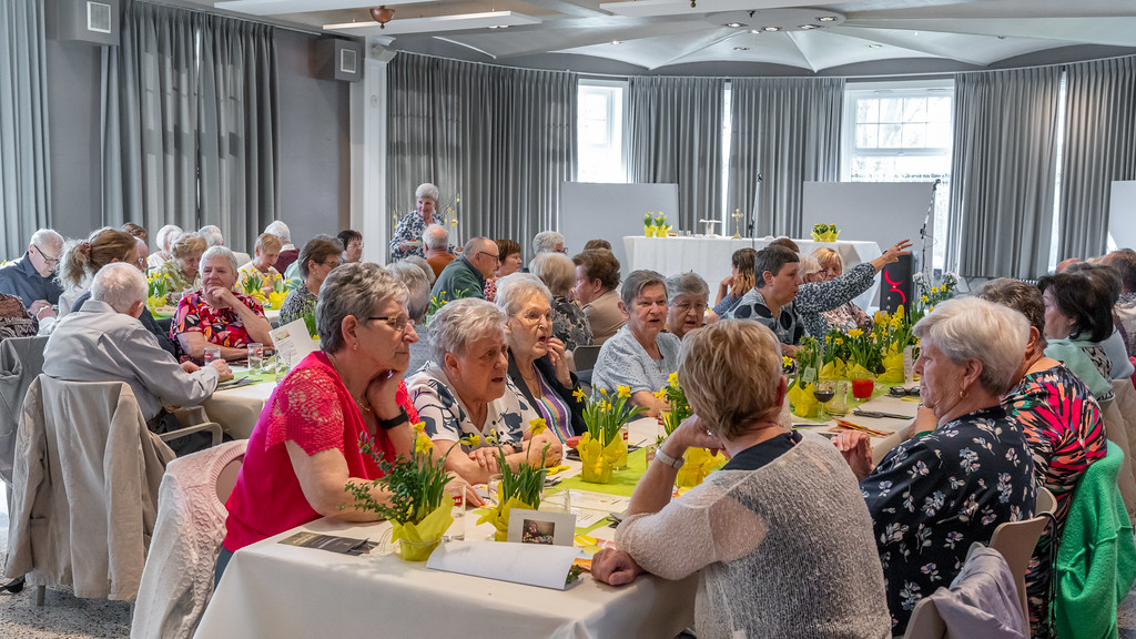 Niet minder dan 75 mensen schreven zich in voor de paasontmoeting op vrijdag 11 april. De kerngroep toverde de zaal van het parochiecentrum ‘Het Park’ om tot een feestelijke ruimte met plaats voor kleurrijke bloemen.