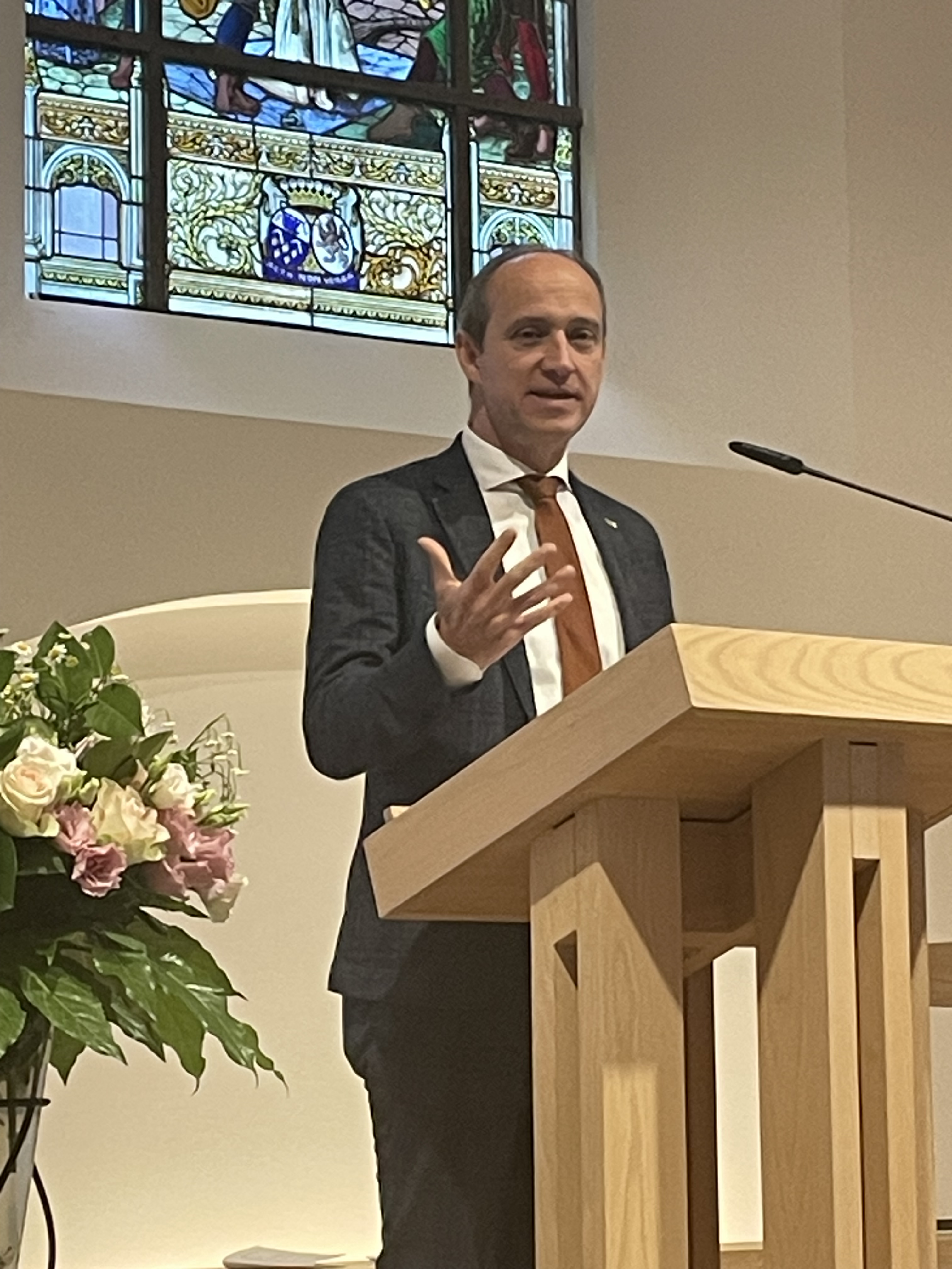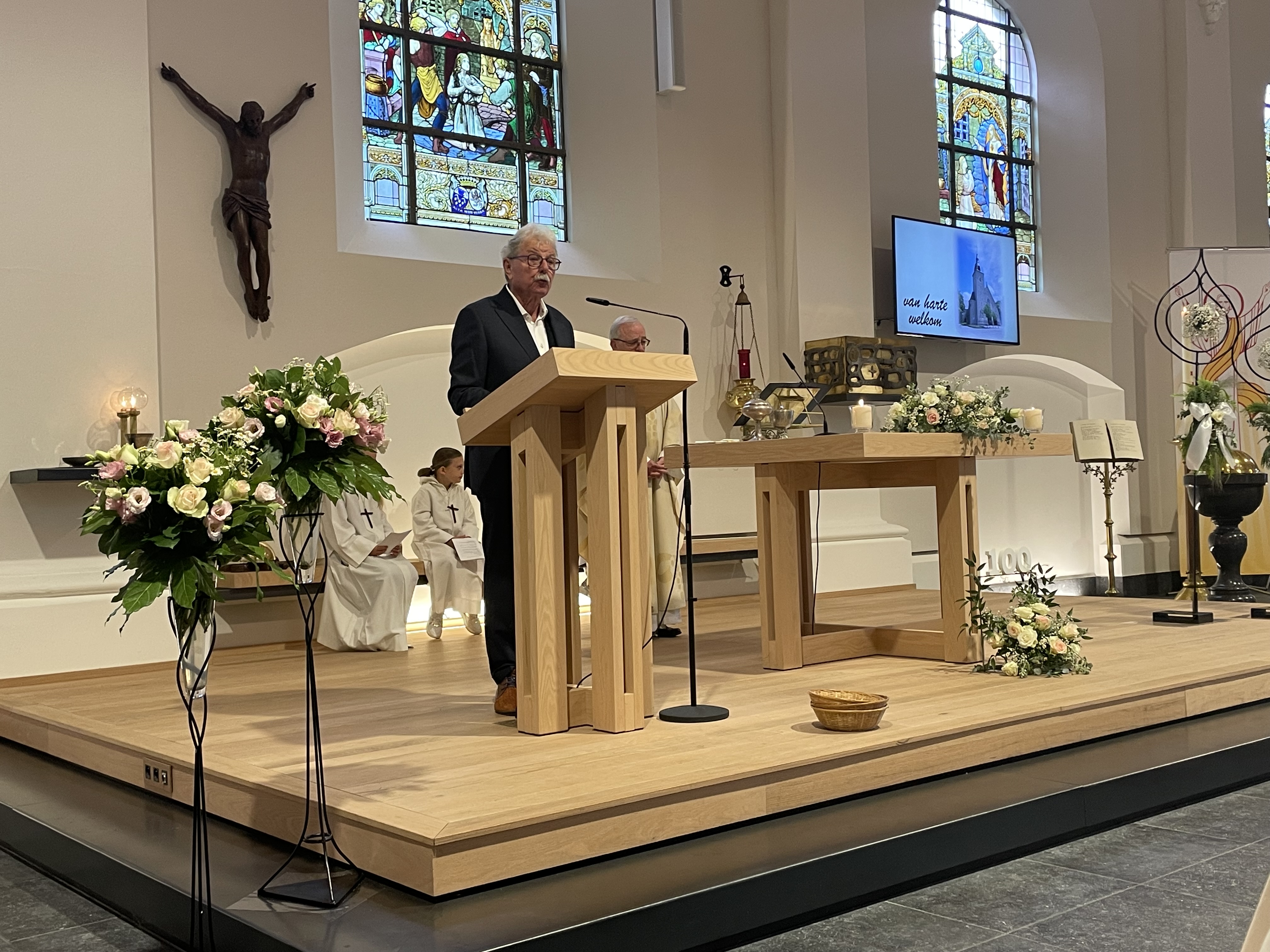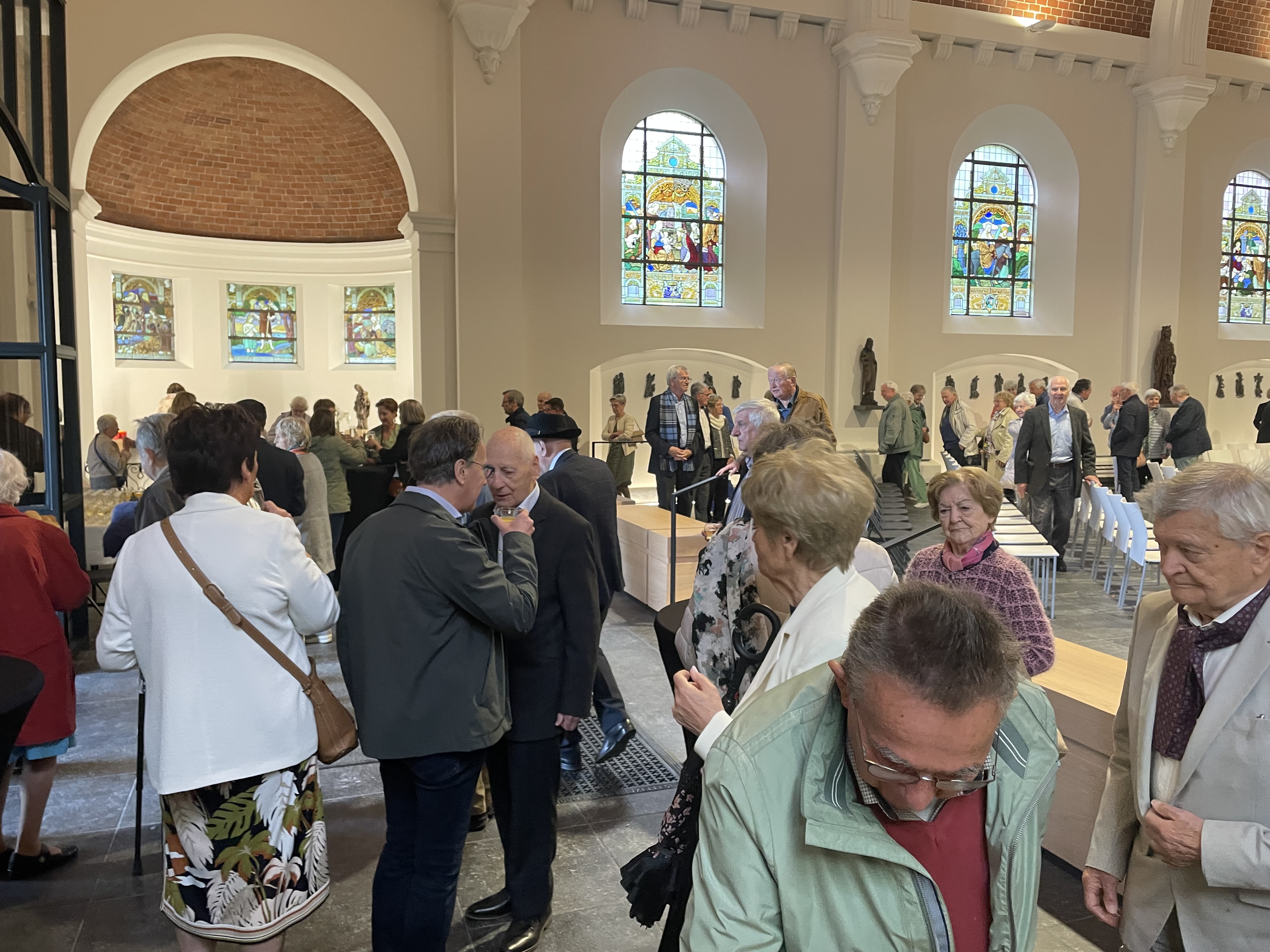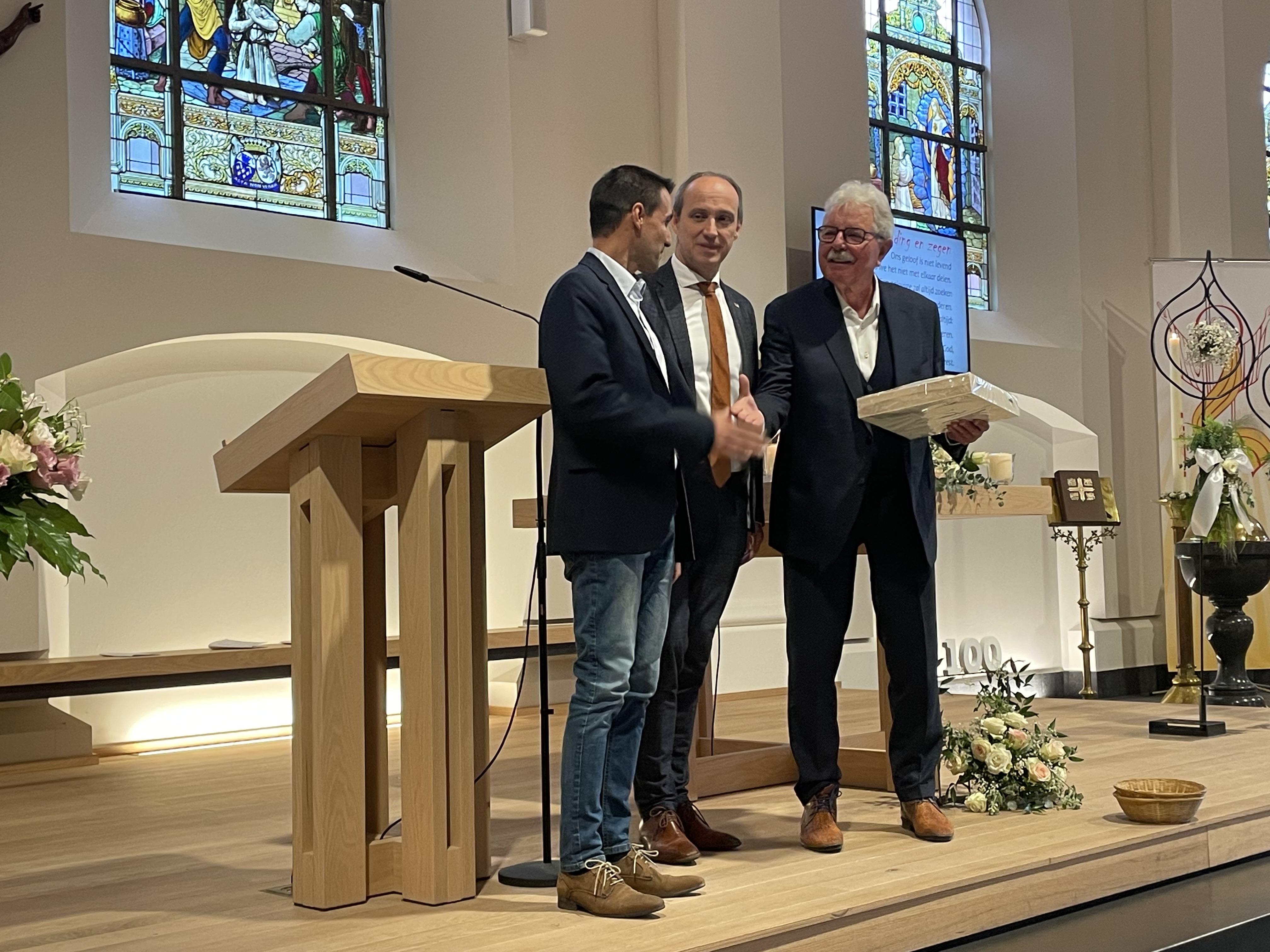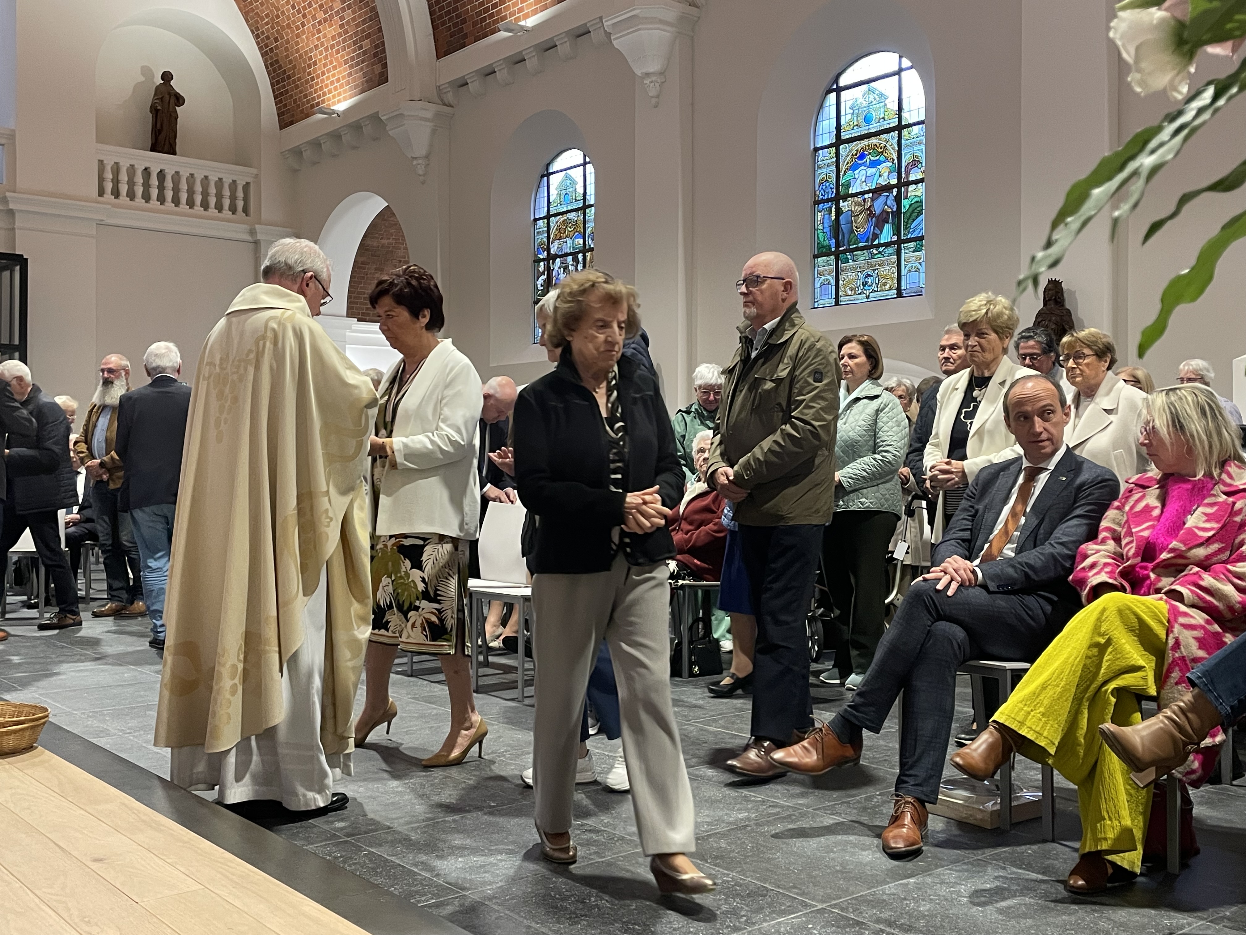Het openingswoord was aan onze voorzitter van de kerkfabriek, Antoine Houben. Met een verhaal over hoe onze kerk een huis maar ook een thuis is, gedragen door alle parochianen en geestelijken die elke week deel uitmaken van onze gemeenschap, zette hij een mooie toon voor de eucharistie en academische zitting. Priester Jaak Hermans had het over onze kerk als een hoopvol perspectief en een oriëntatiepunt voor de toekomst. Mooie woorden die ons toch deden stilstaan bij de waarde van ons kerkgebouw. Als een baken in de storm, probeert zij een gevoel van richting te geven in onze turbulente maatschappij.